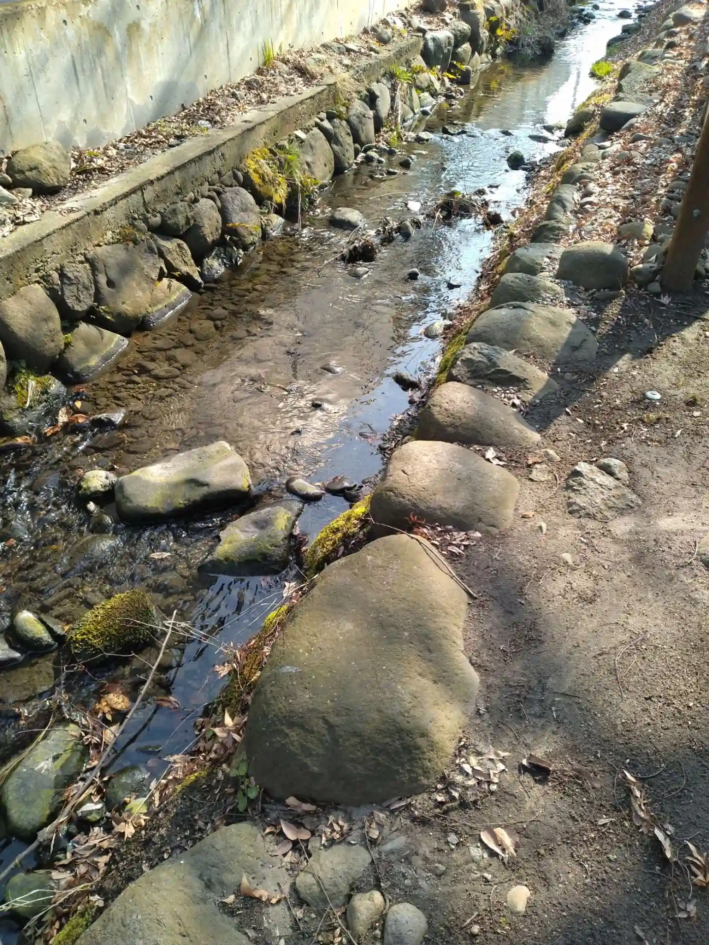 神明神社(錦町)境内奥側に、川が流れていました