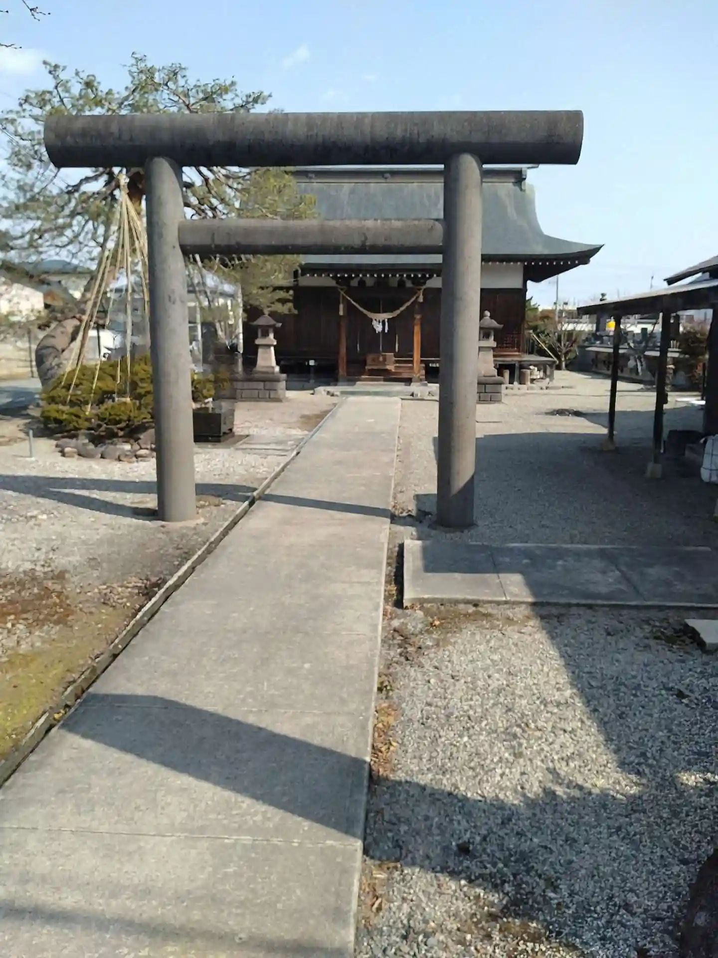 神明神社(江俣)入口から見た鳥居の様子です