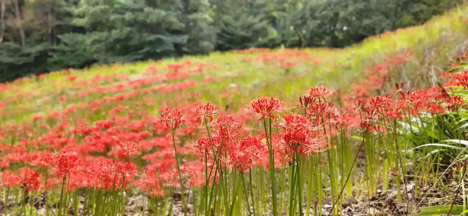 山頂から、お堂へむかう途中に彼岸花が沢山咲いてます。これからですね!
