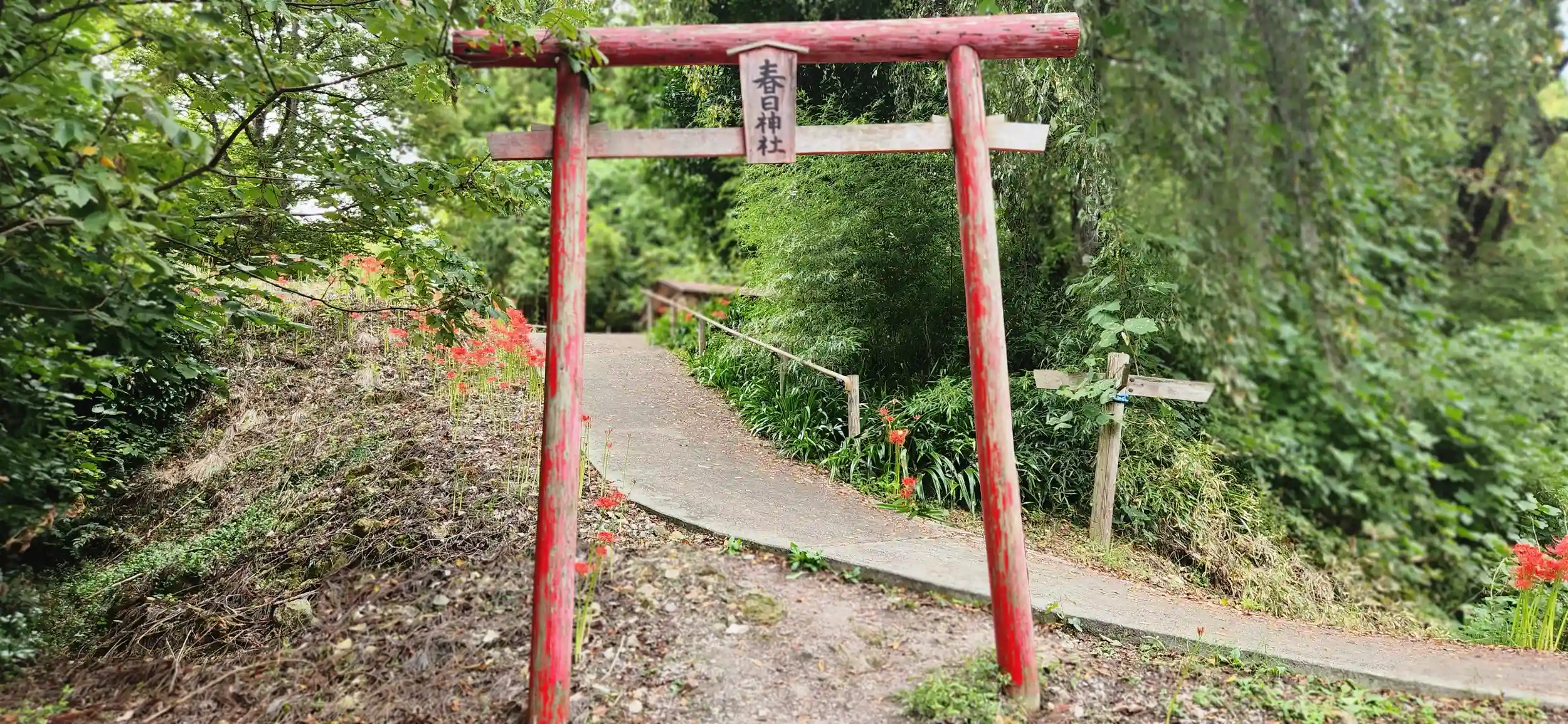 春日神社が彼岸花群生地を抜けると有りました。