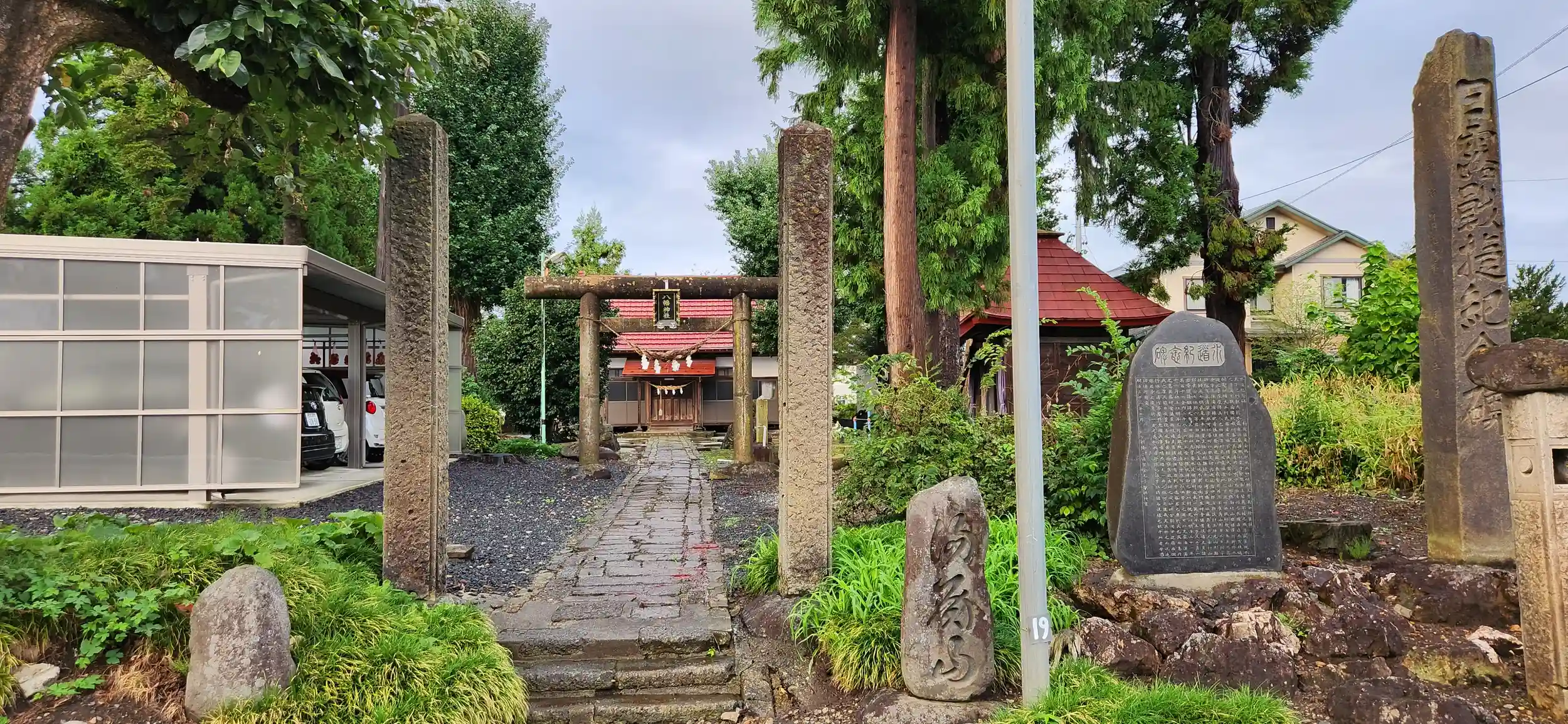 駐車場は、ありません(((^^;)路駐にて参拝しました。前日の雨がまだ残っており、境内は水溜まり多かったです。