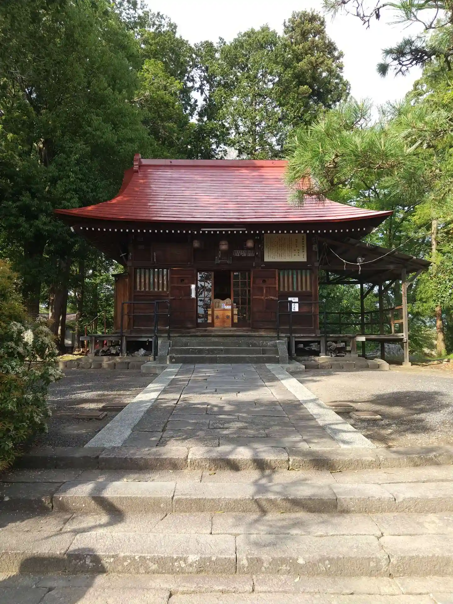 御祭神、松平利長公・松平信一公 本殿は一間社、神明造、銅板葺、拝殿は入母屋、鉄板葺、平入、桁行3間…