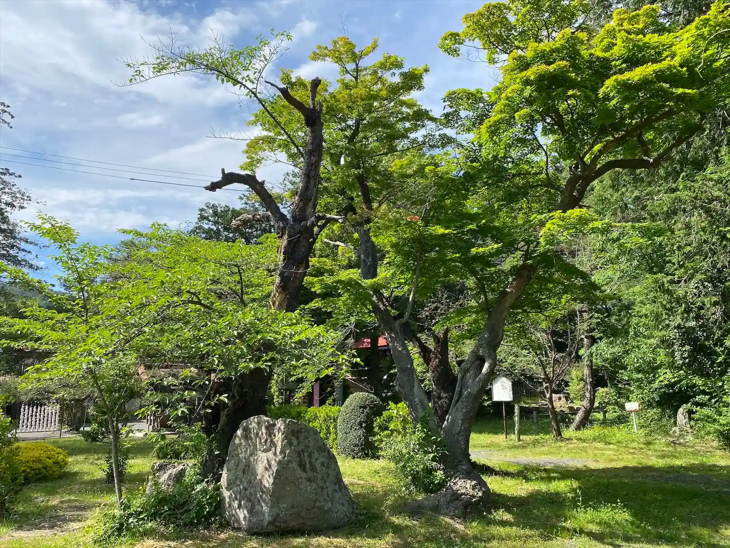 上山城の真横にある神社。お社の前の松が見事な枝振りでした。