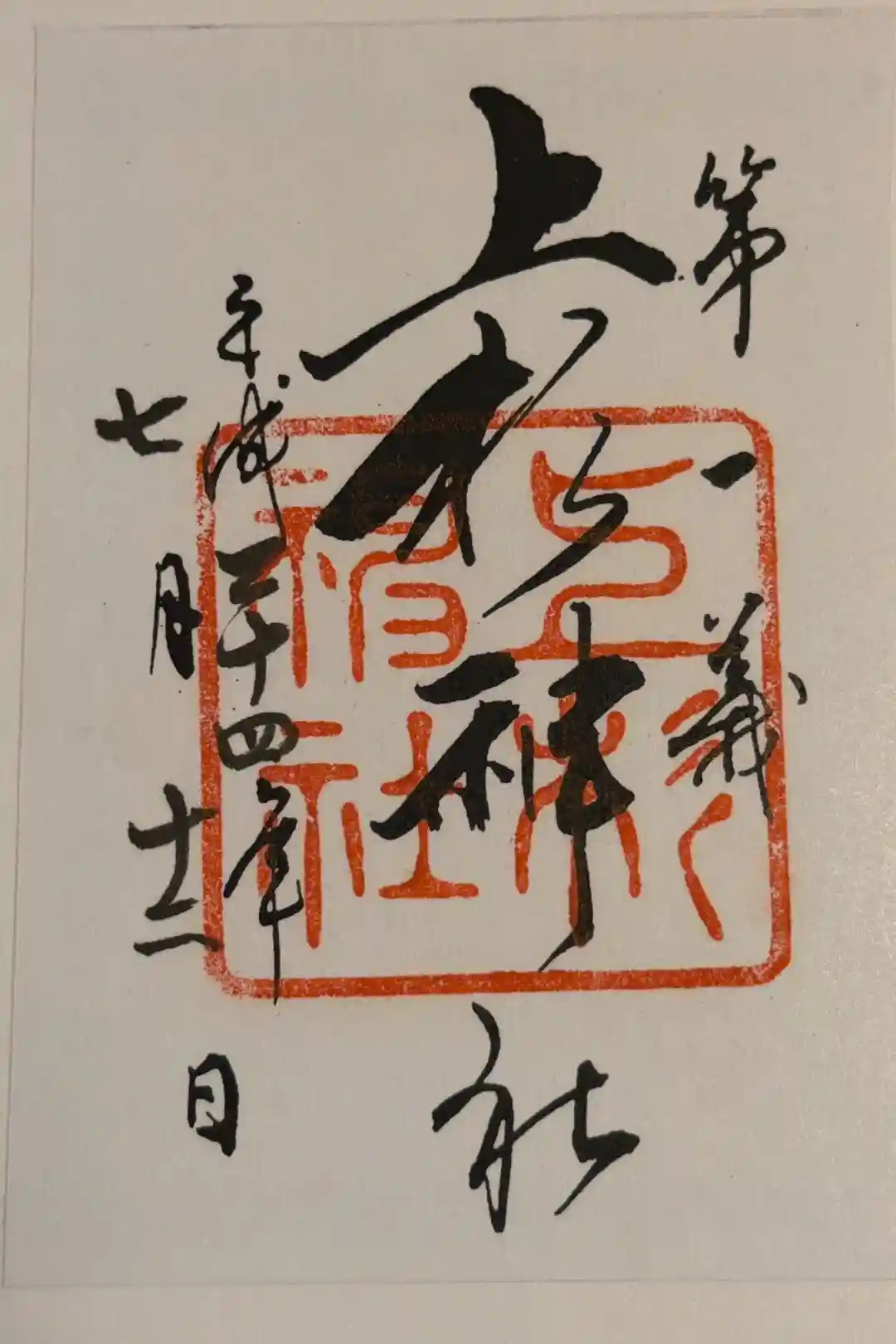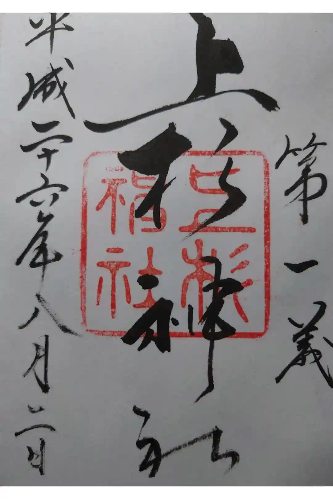 勢いのある文字と真ん中の神社印のみの。シンプルで力強い御朱印です。