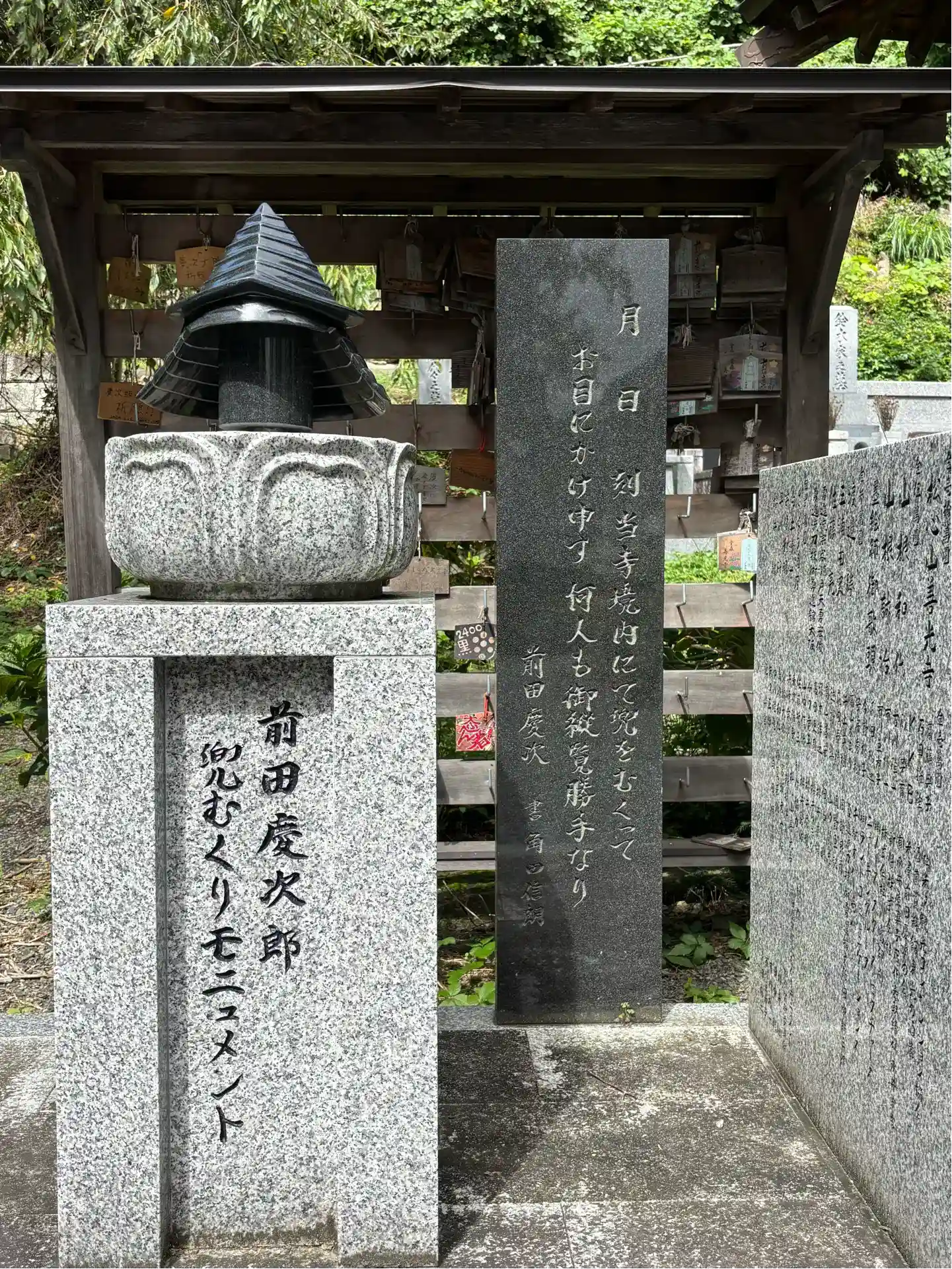 人気の武将、かぶきものの前田慶次が晩年庵を構えたことから供養塔があります。
