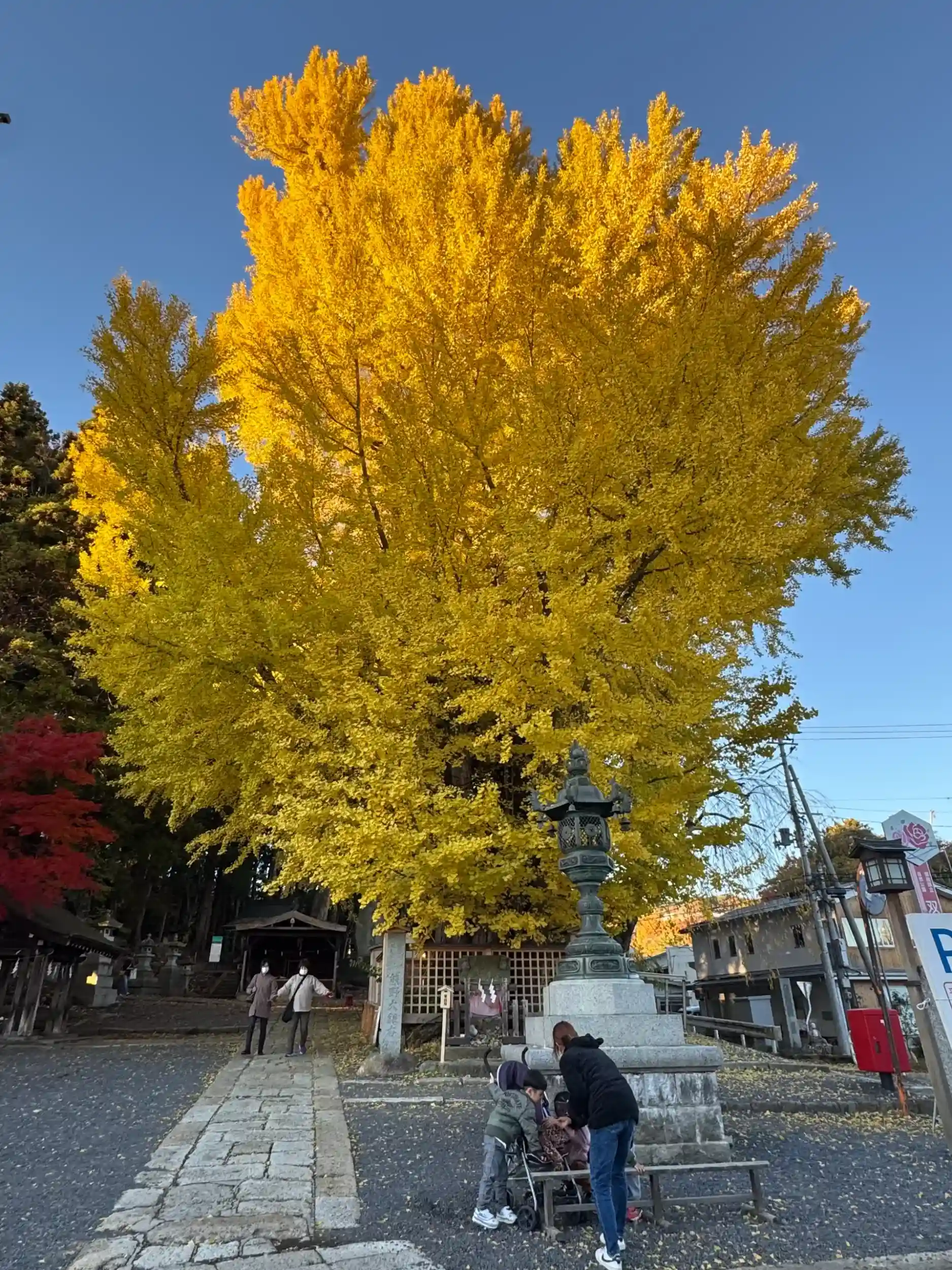 友達と行きました。参道の階段が長く少しきつかったですが、上の神社に着いたら素晴らしく感動しました。参道の始まり、階段の手前にある鳥居のそばの銀杏の大きな木が見事な色でした。