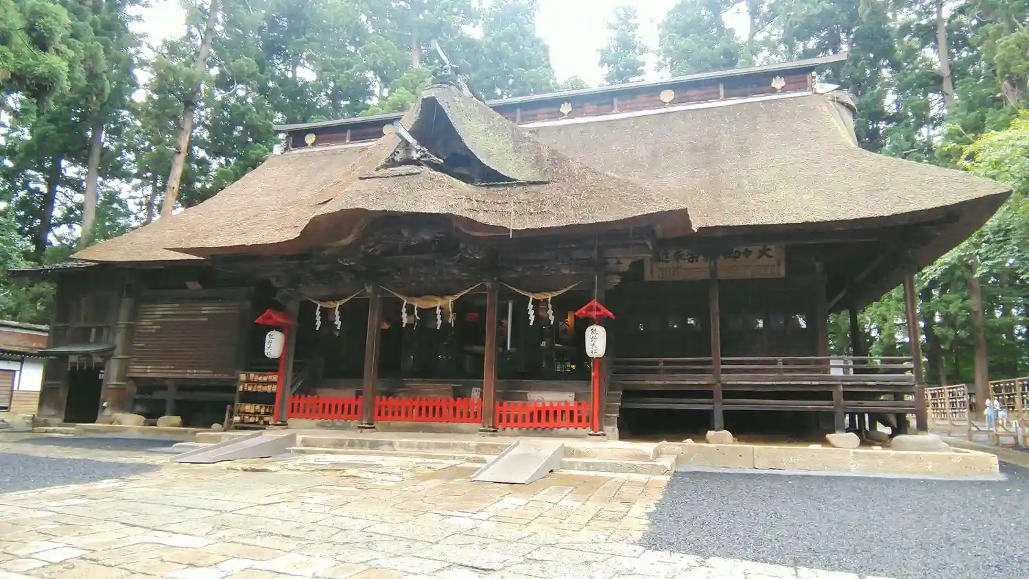 最後に、最も印象に残る<拝殿>全景。巨大な草葺屋根は迫力満点。(^▽^)/