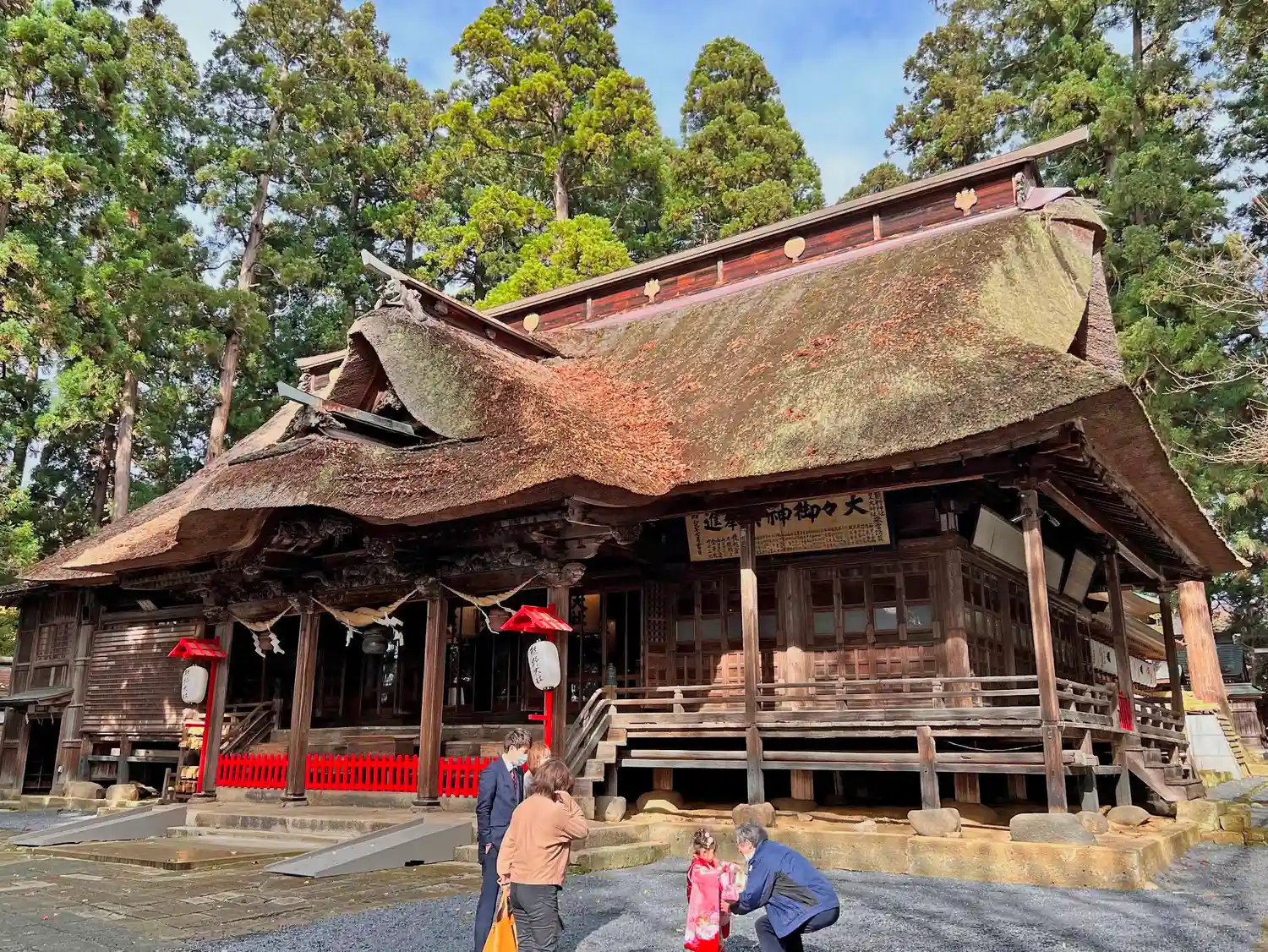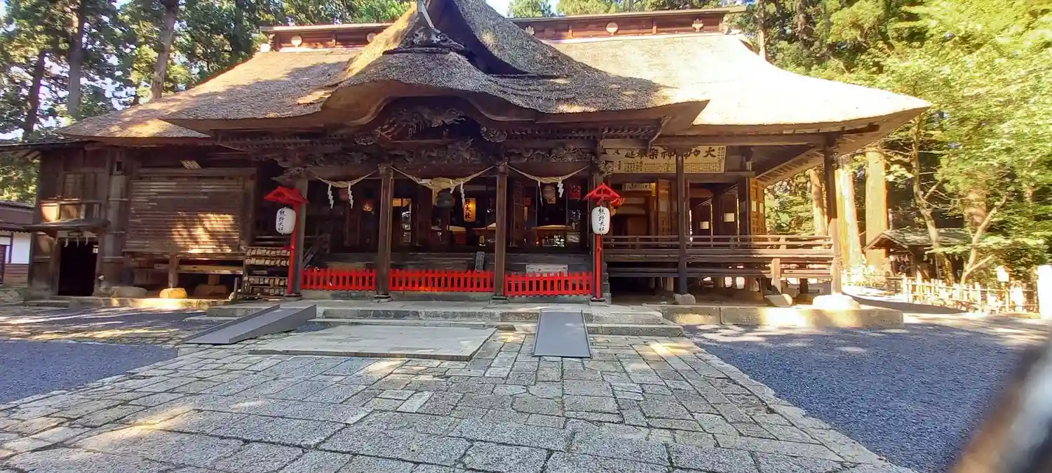 茅葺き屋根の拝殿で歴史を感じます