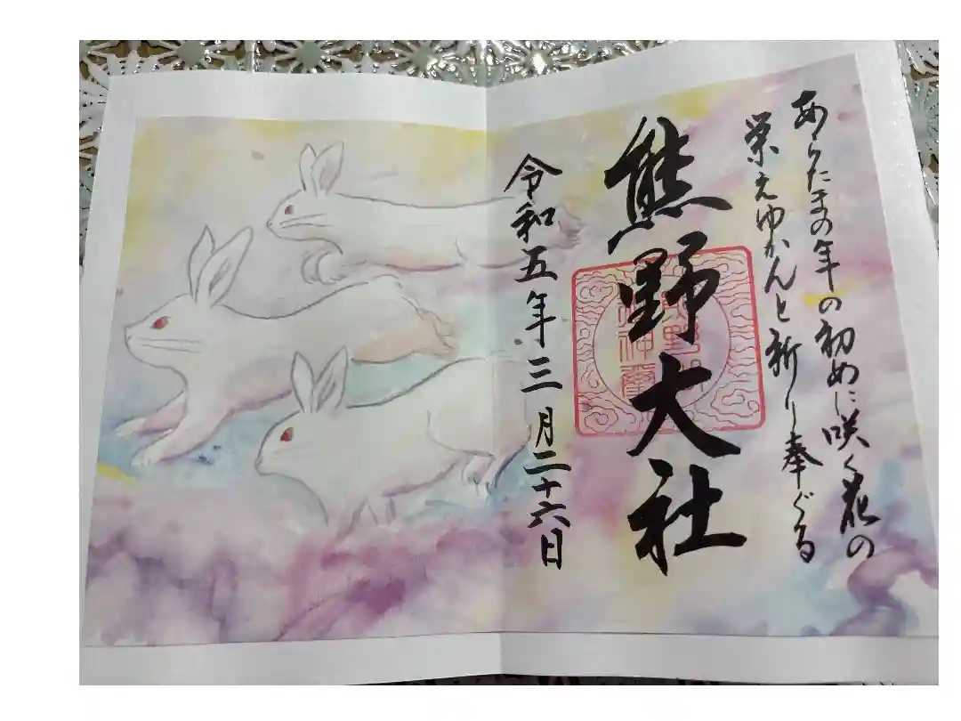 桜の境内と三羽のうさぎ御朱印