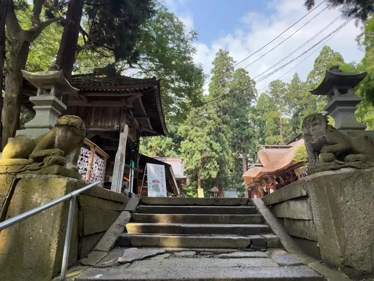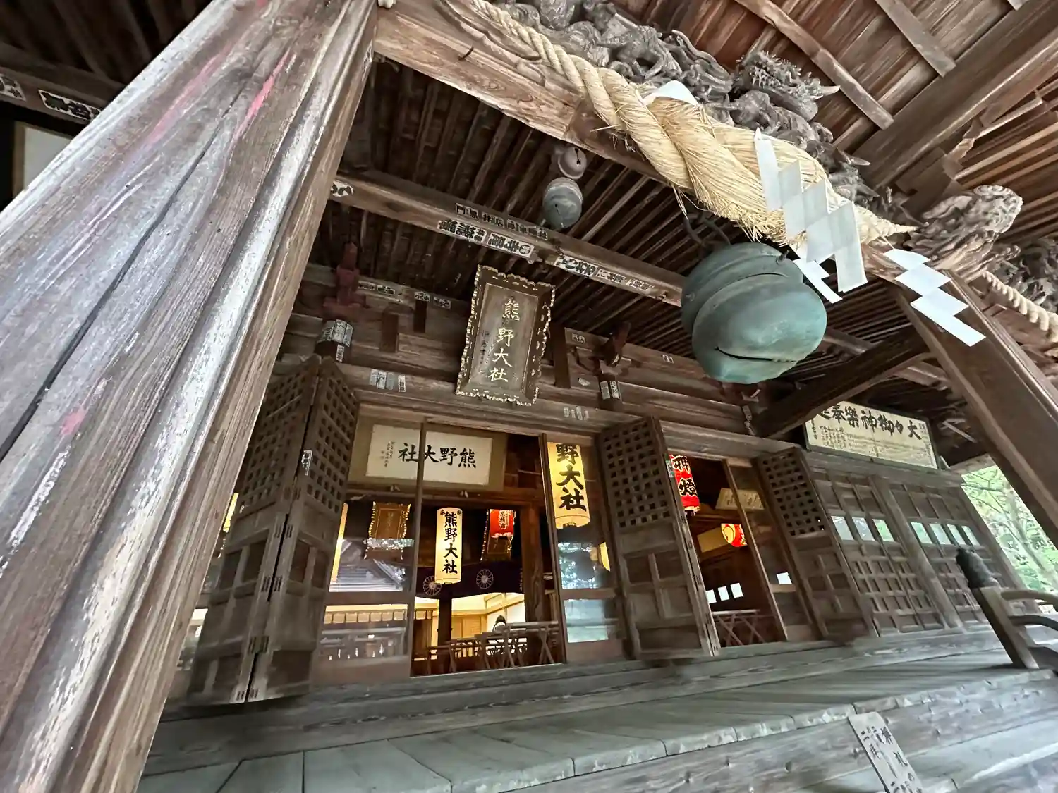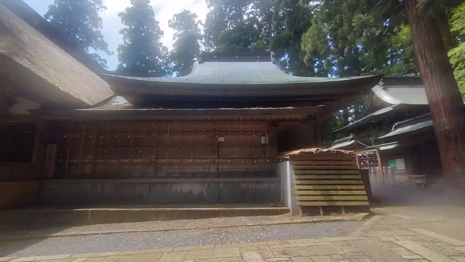 景政神社近くから見た本社(熊野大社)の拝殿と幣殿。幣殿もすごく大きい。(;゚Д゚)
