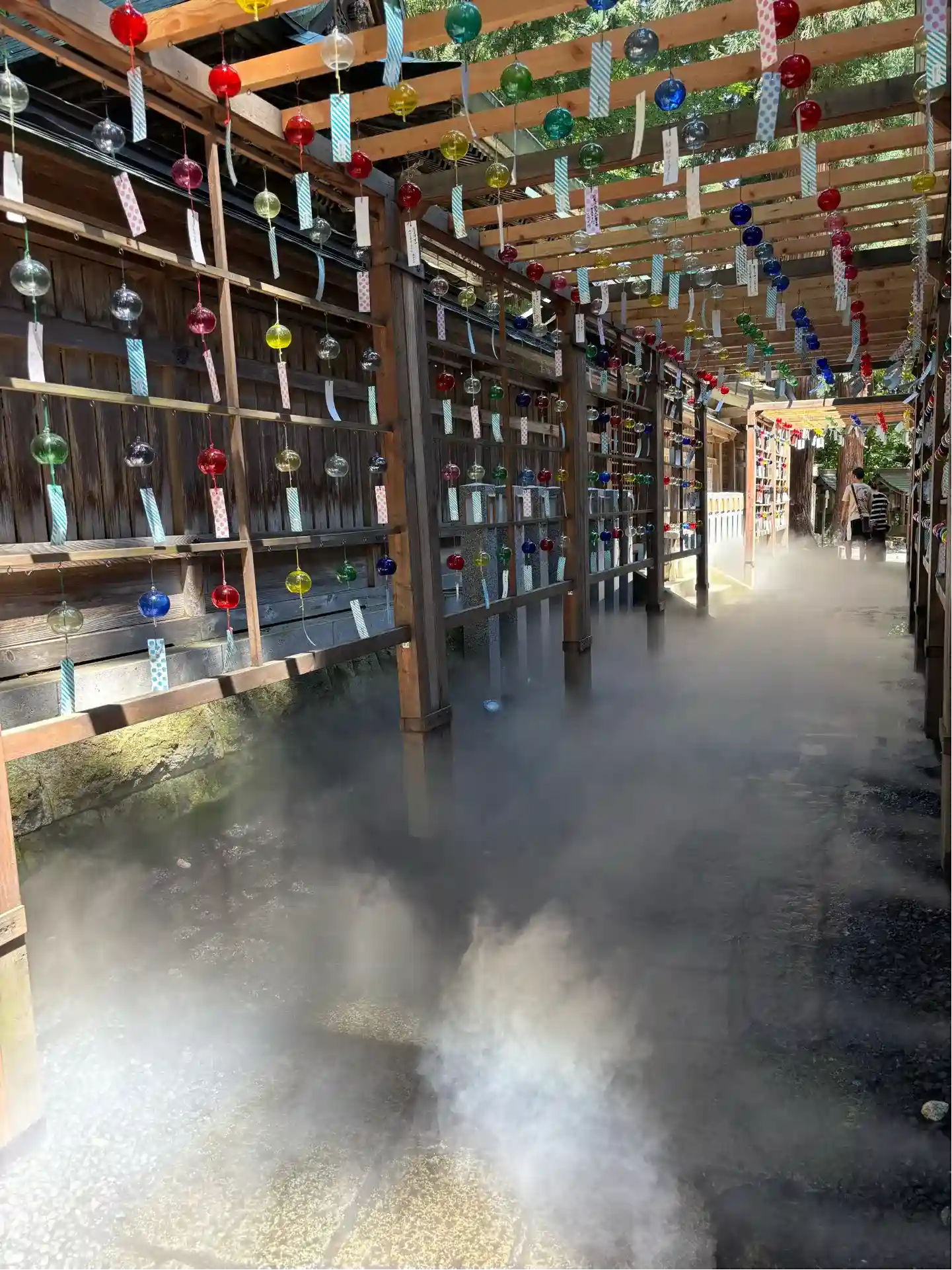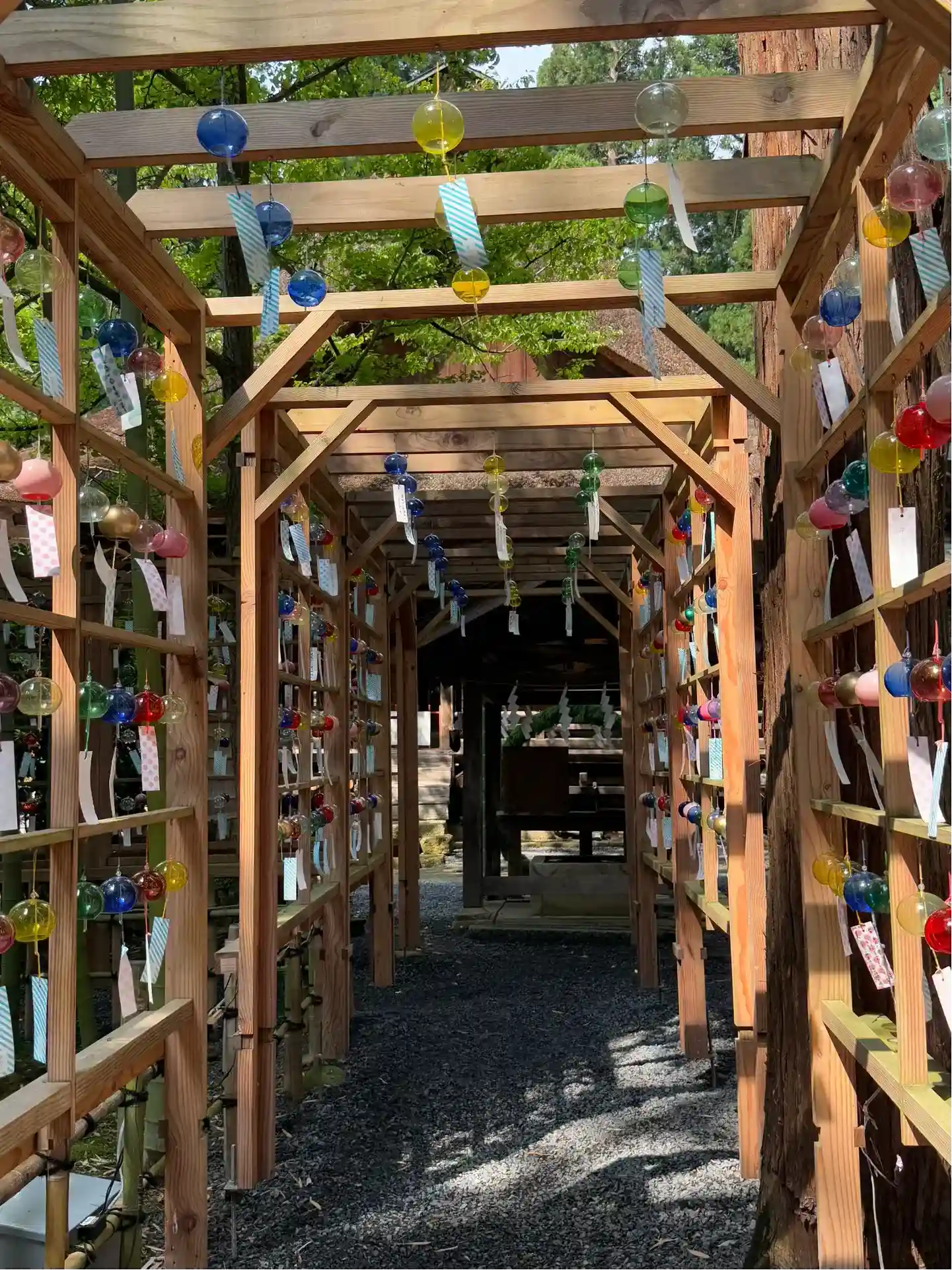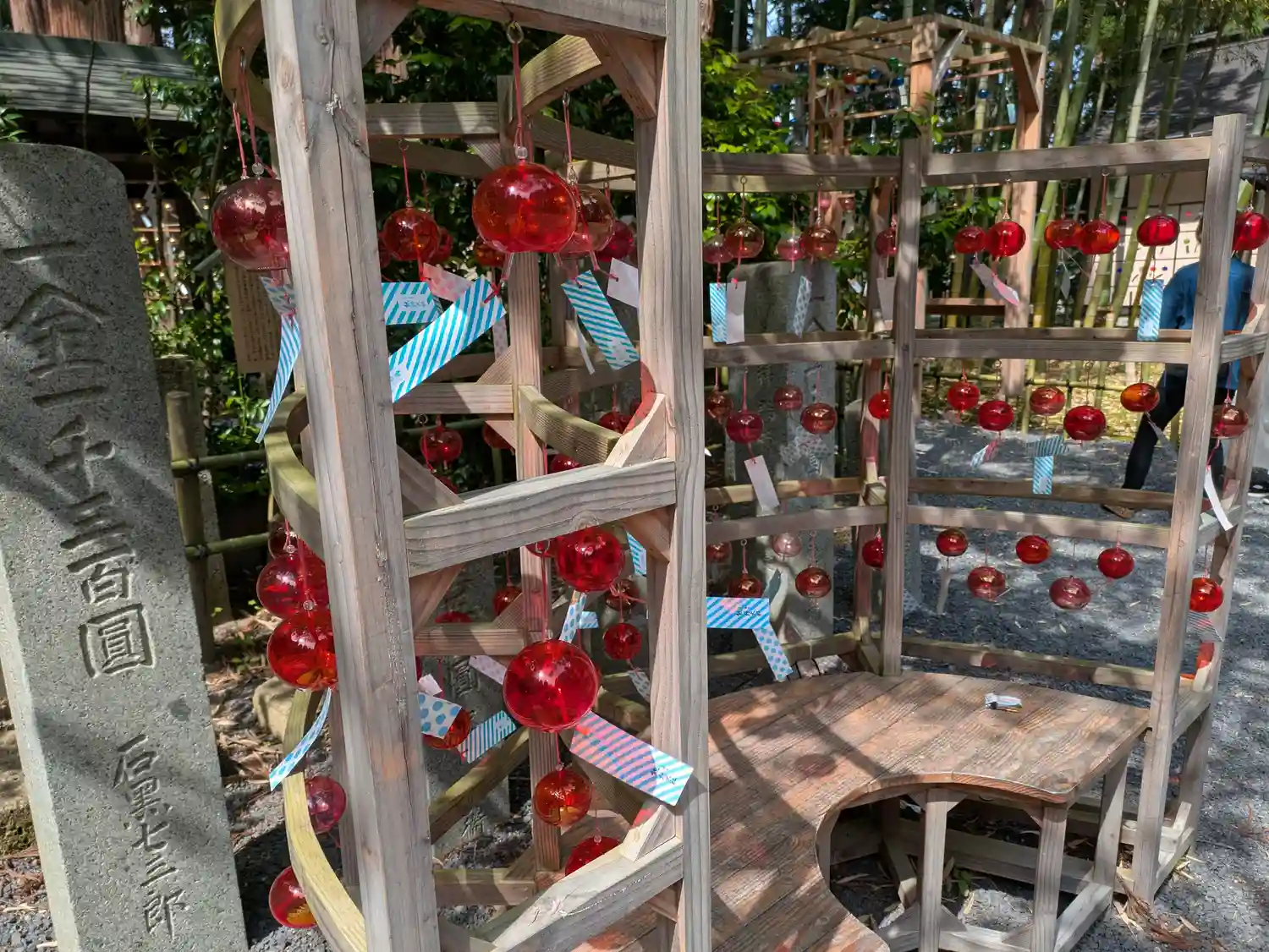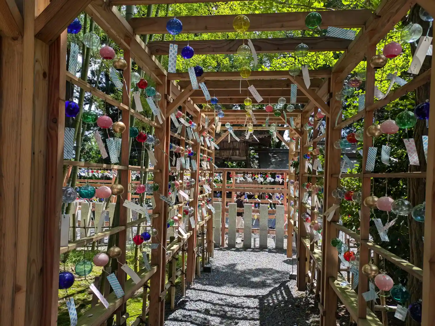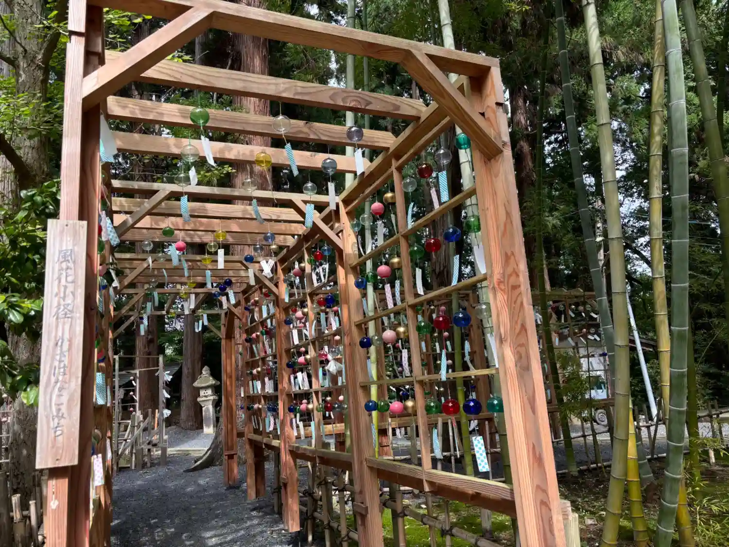去年と風鈴の配置が変わっており、たくさんの人が写真を撮って楽しんでいま…