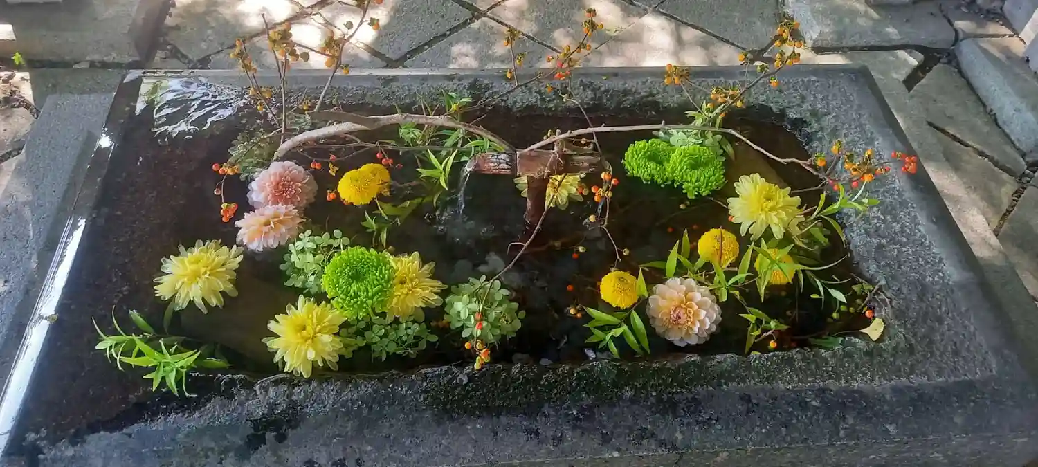 手水舎の🍁✨が素敵