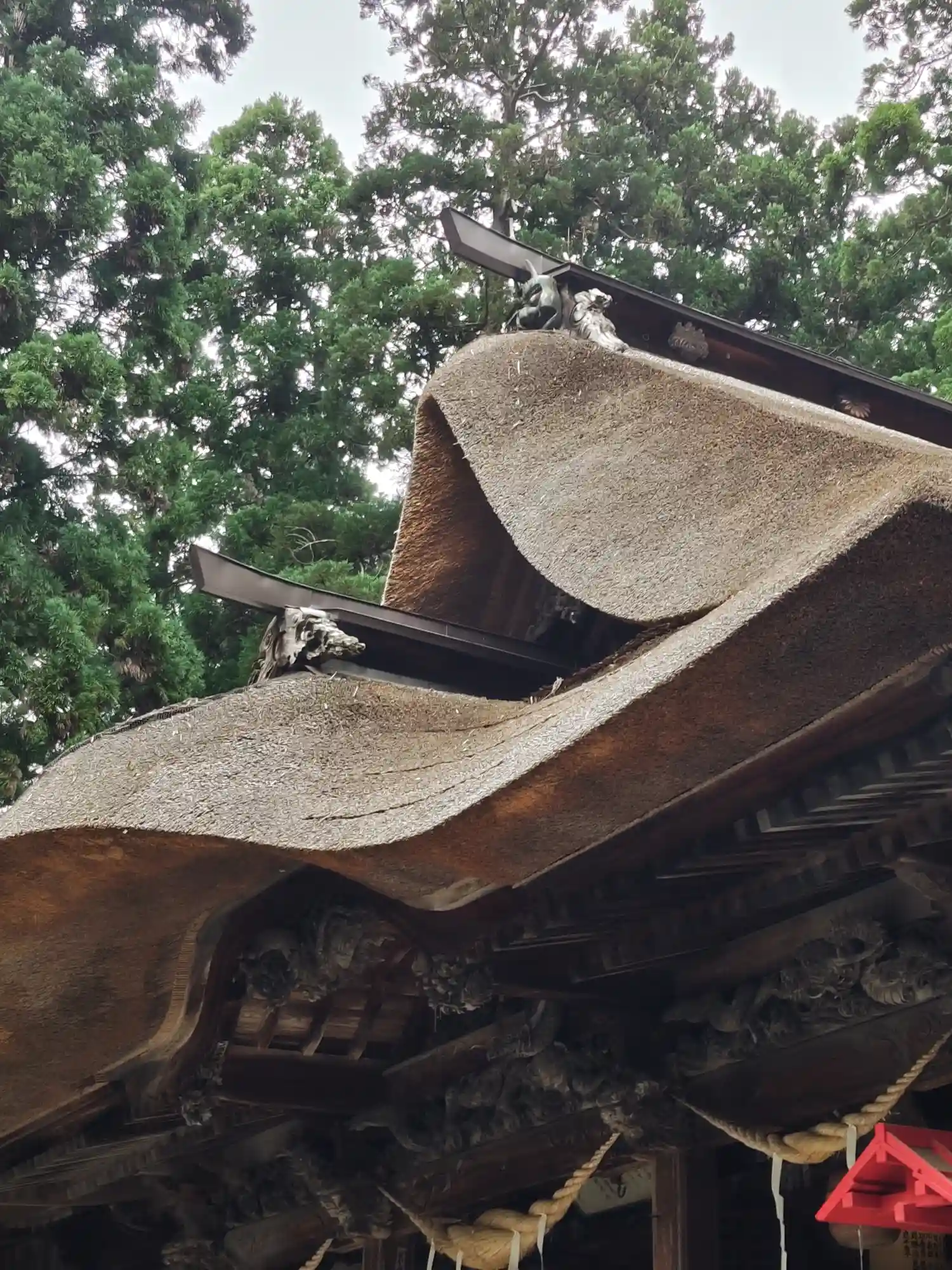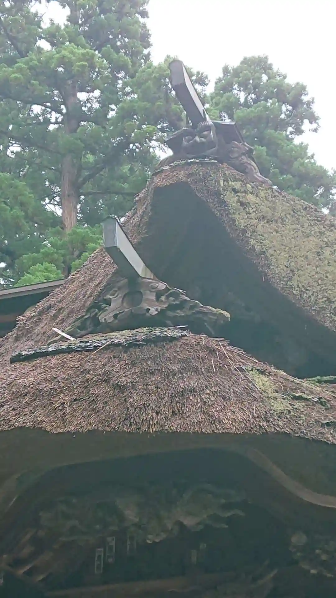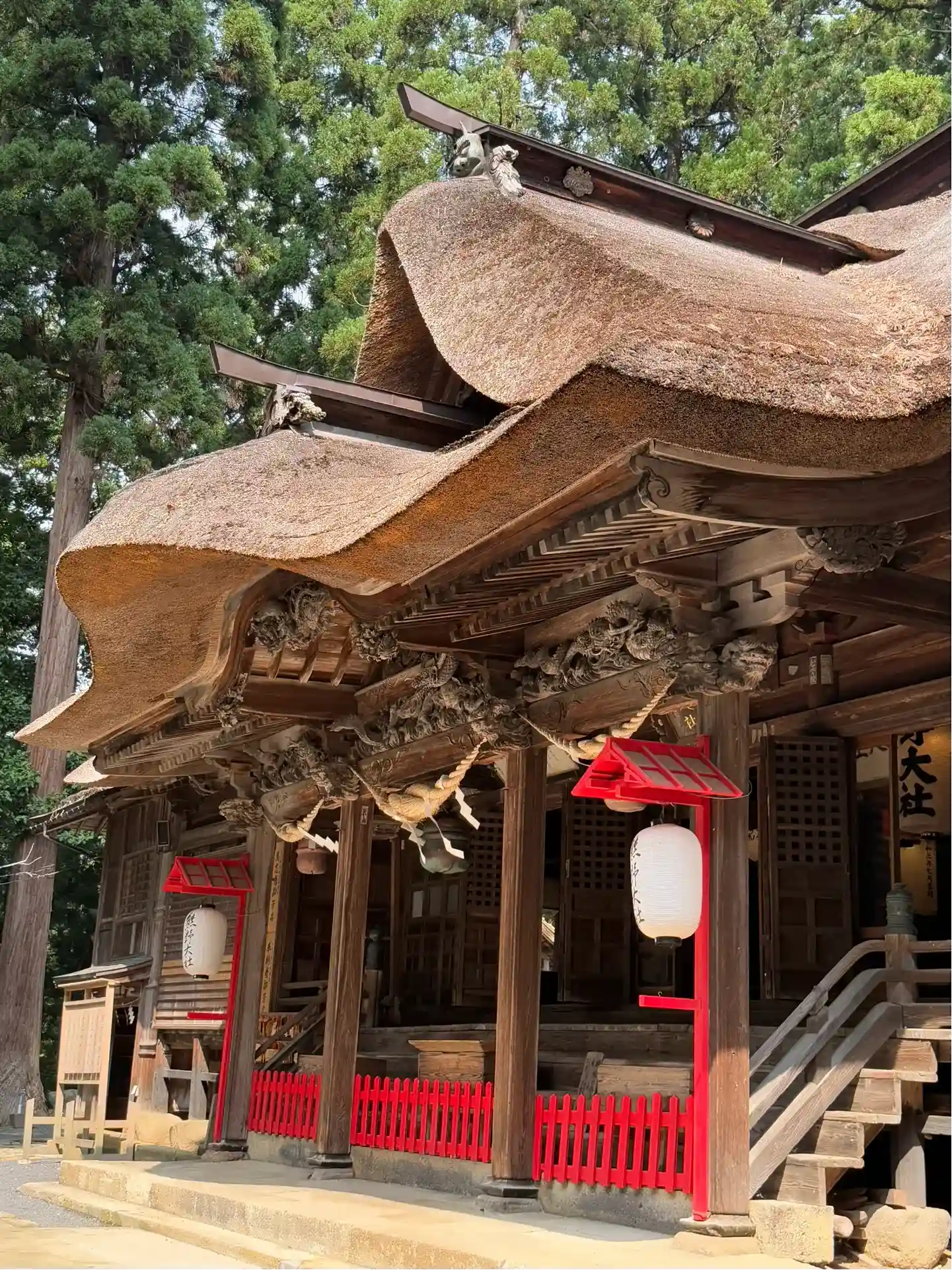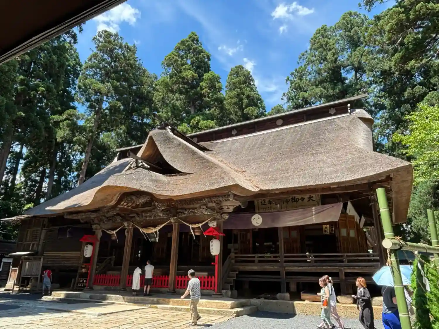 最後に、最も印象に残る<拝殿>全景。巨大な草葺屋根は迫力満点。(^▽^)/