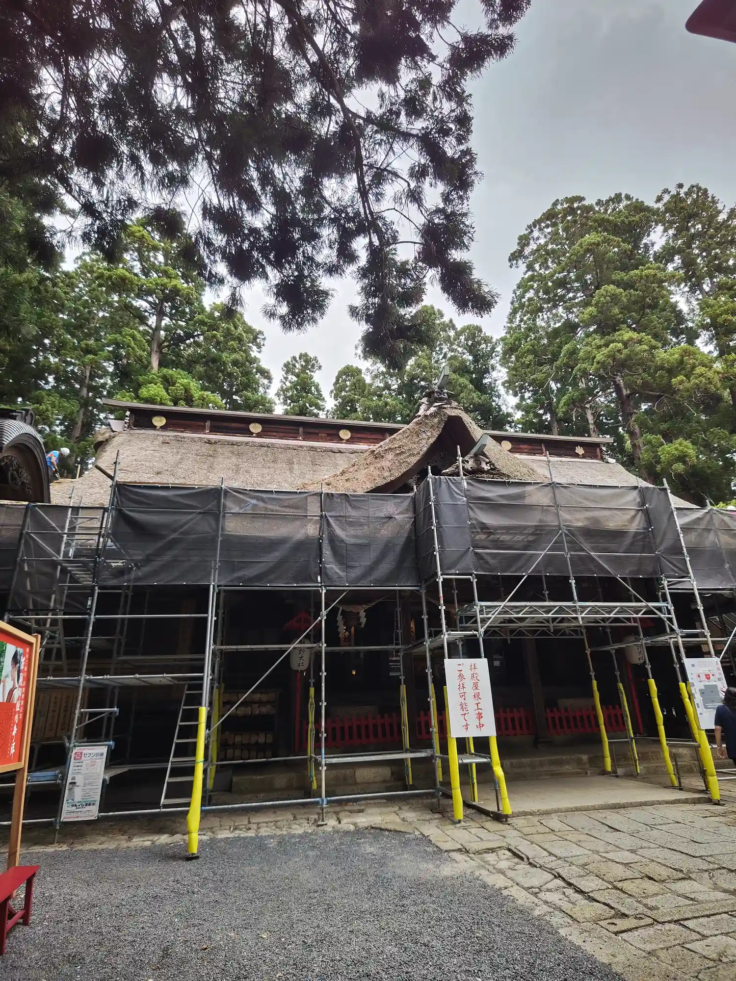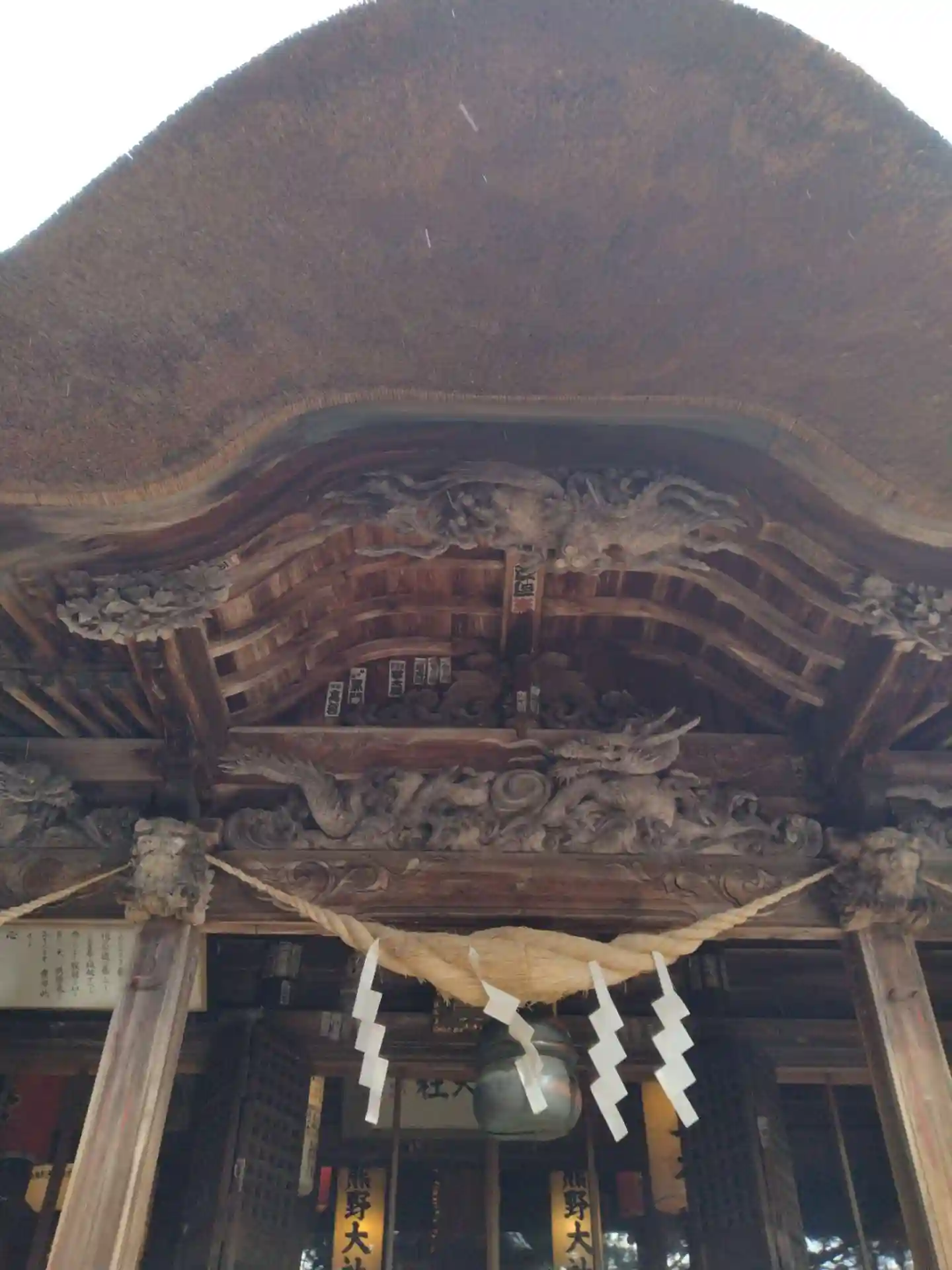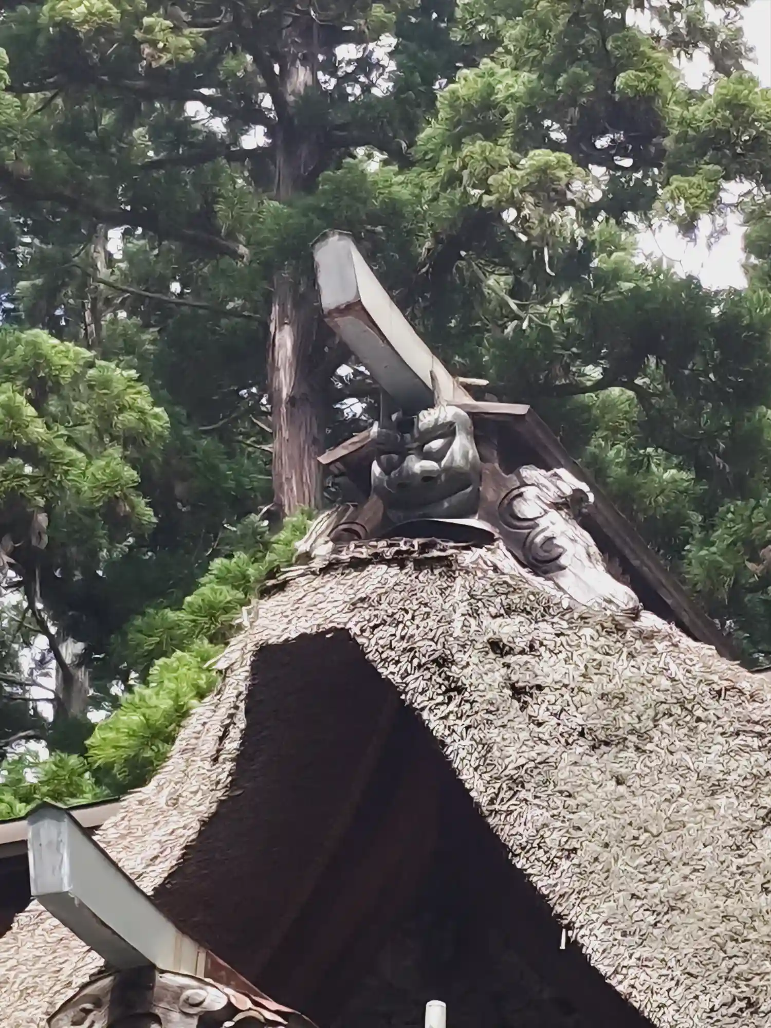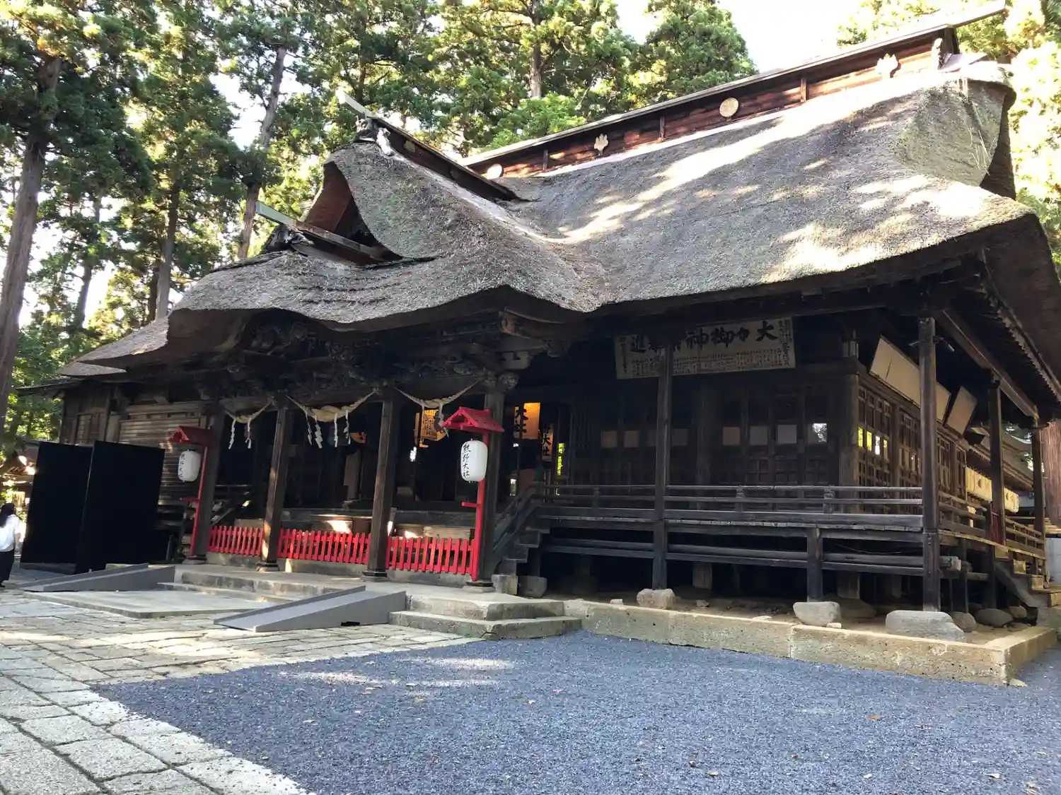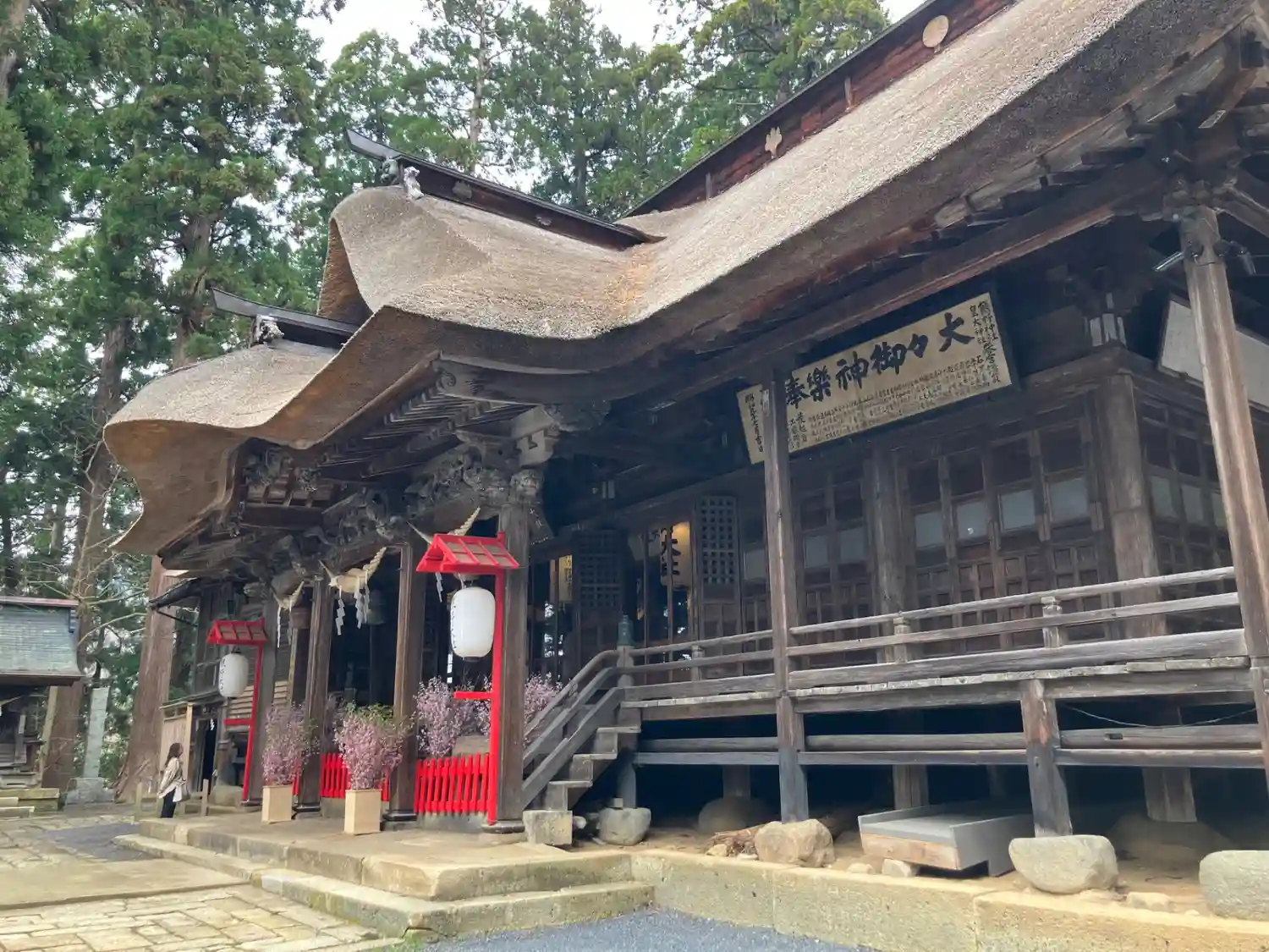 最後に、最も印象に残る<拝殿>全景。巨大な草葺屋根は迫力満点。(^▽^)/