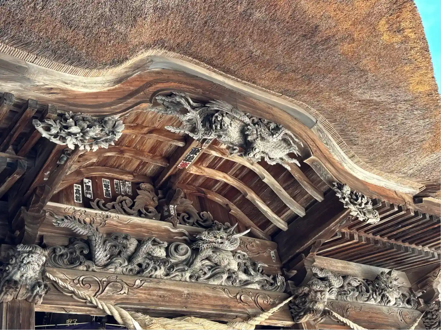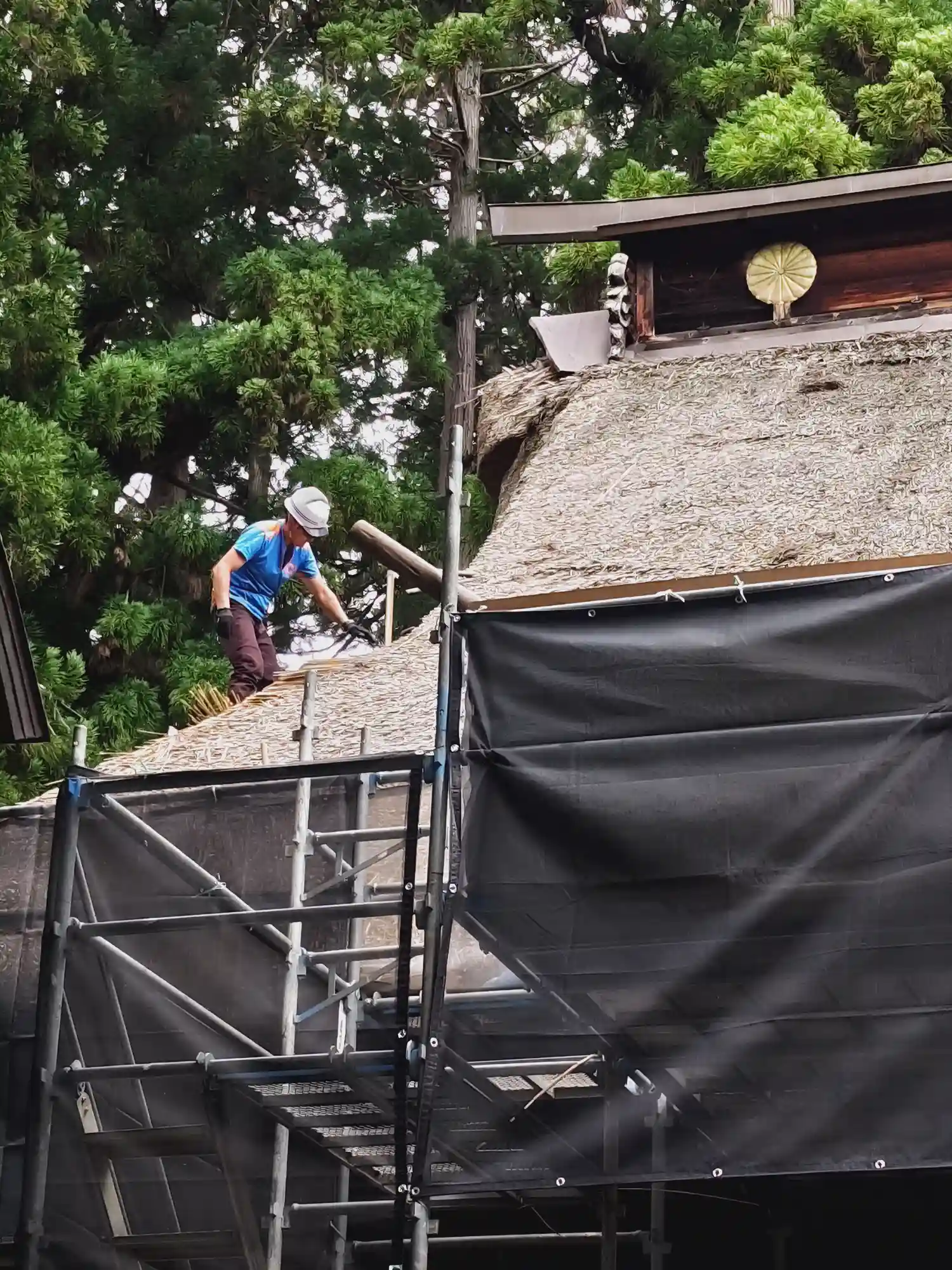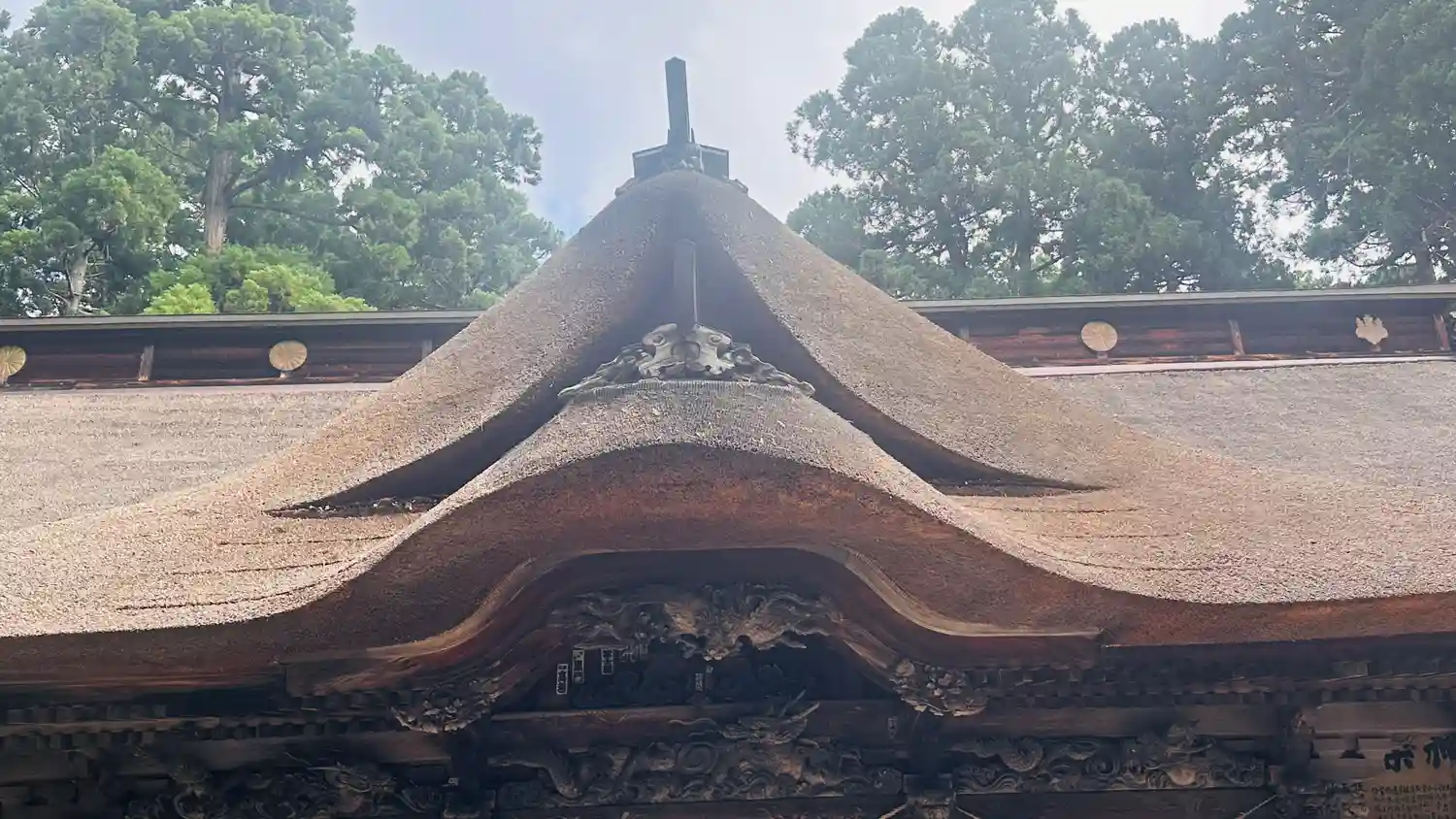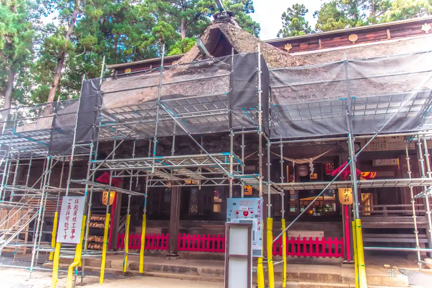 最後に、最も印象に残る<拝殿>全景。巨大な草葺屋根は迫力満点。(^▽^)/