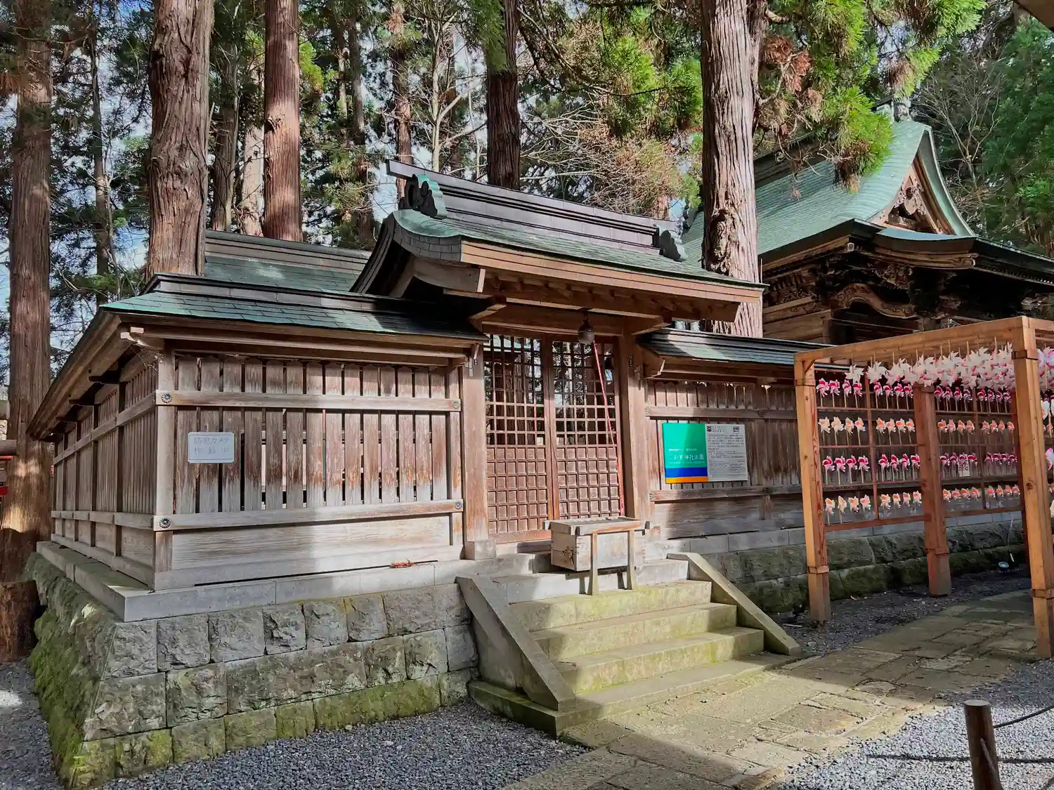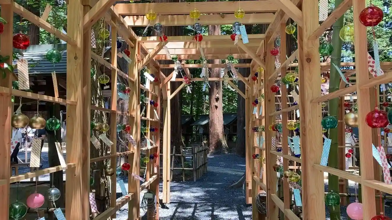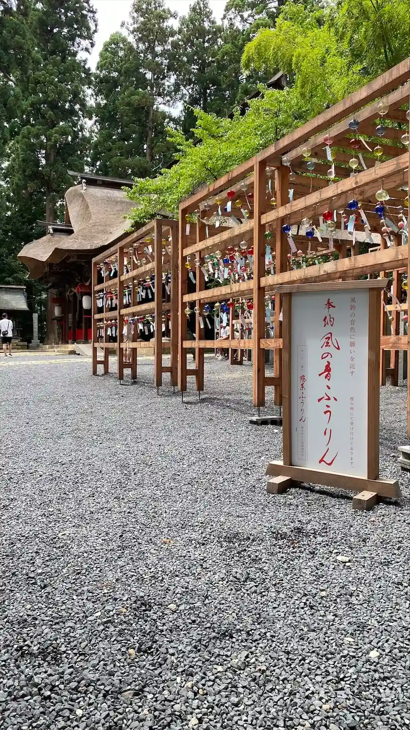 東北のお伊勢様、今回は境内に風鈴🎐が沢山飾られていました。本殿裏の隠しうさぎは双眼鏡無いと探せませ…