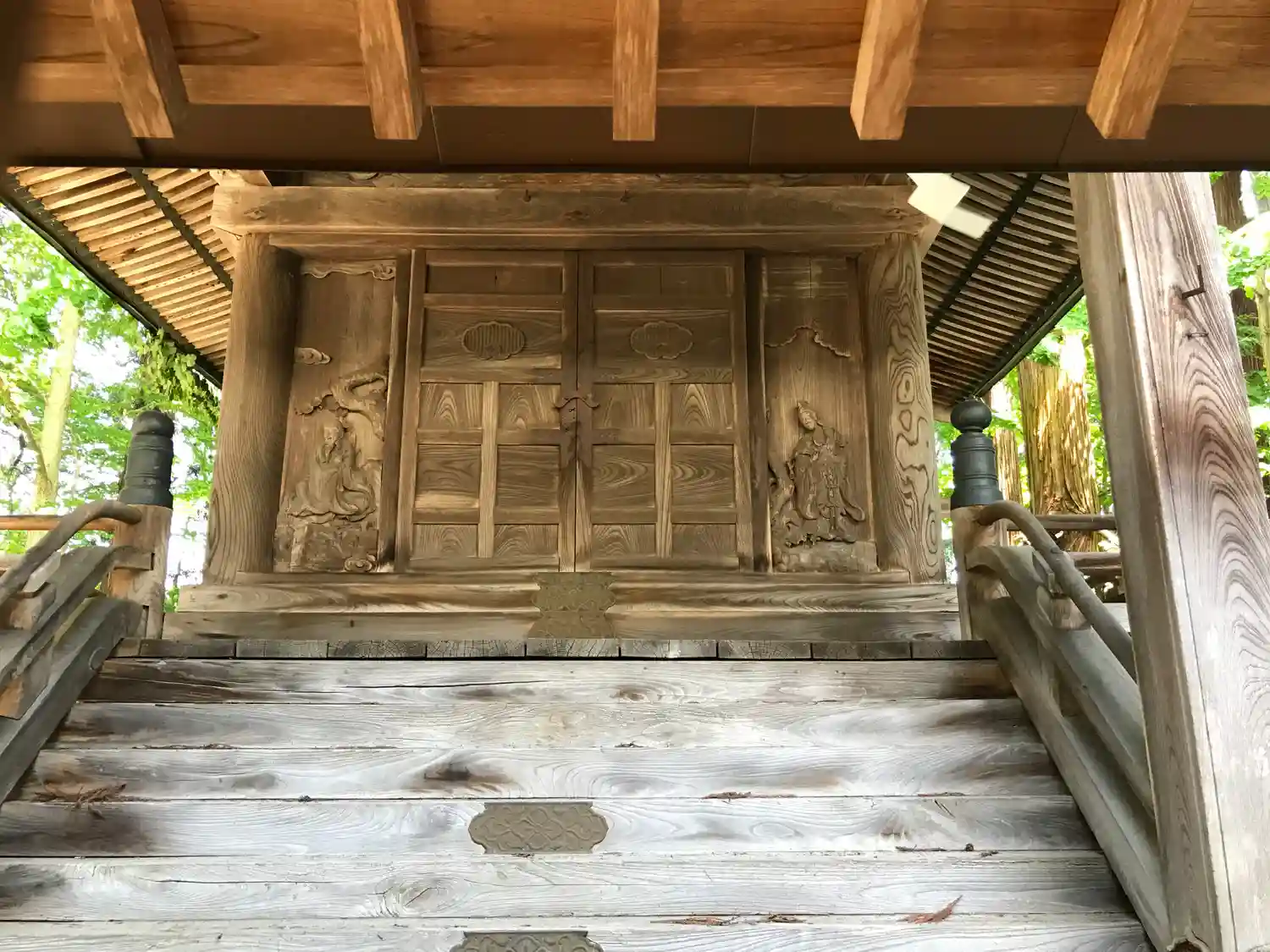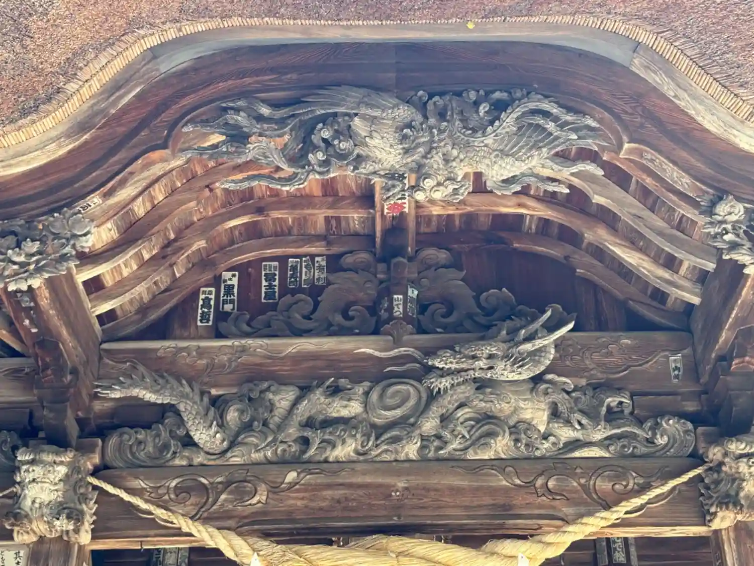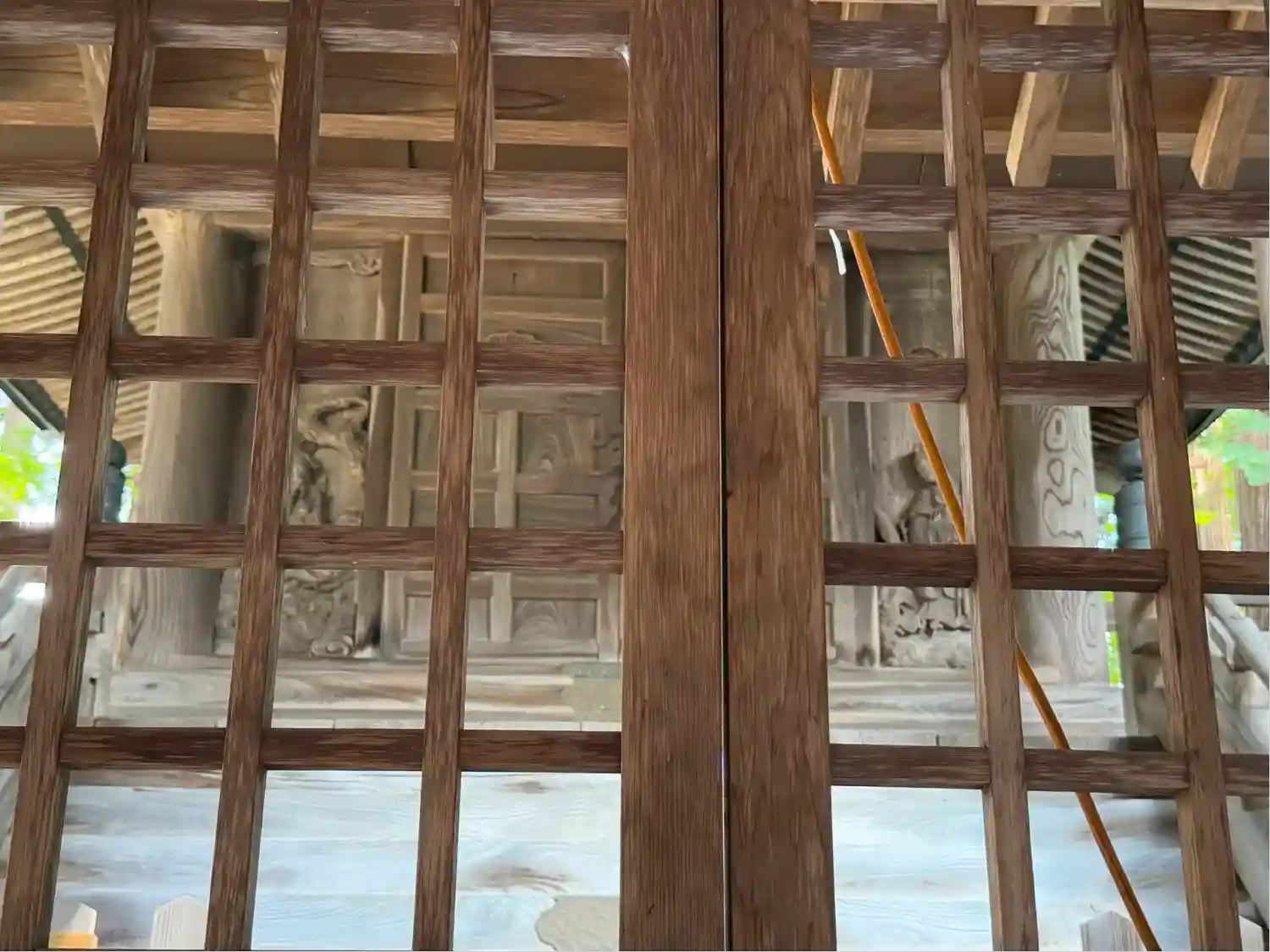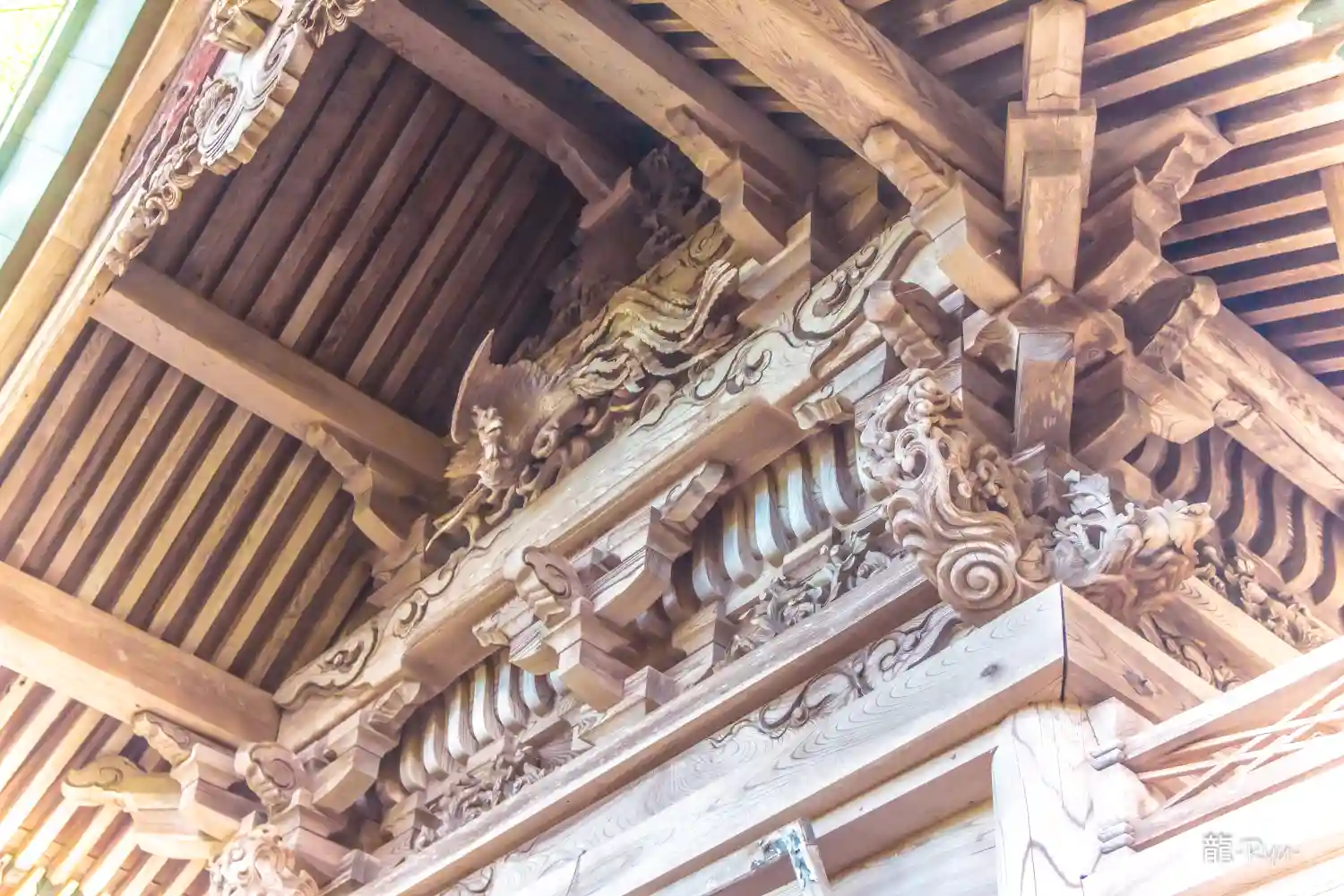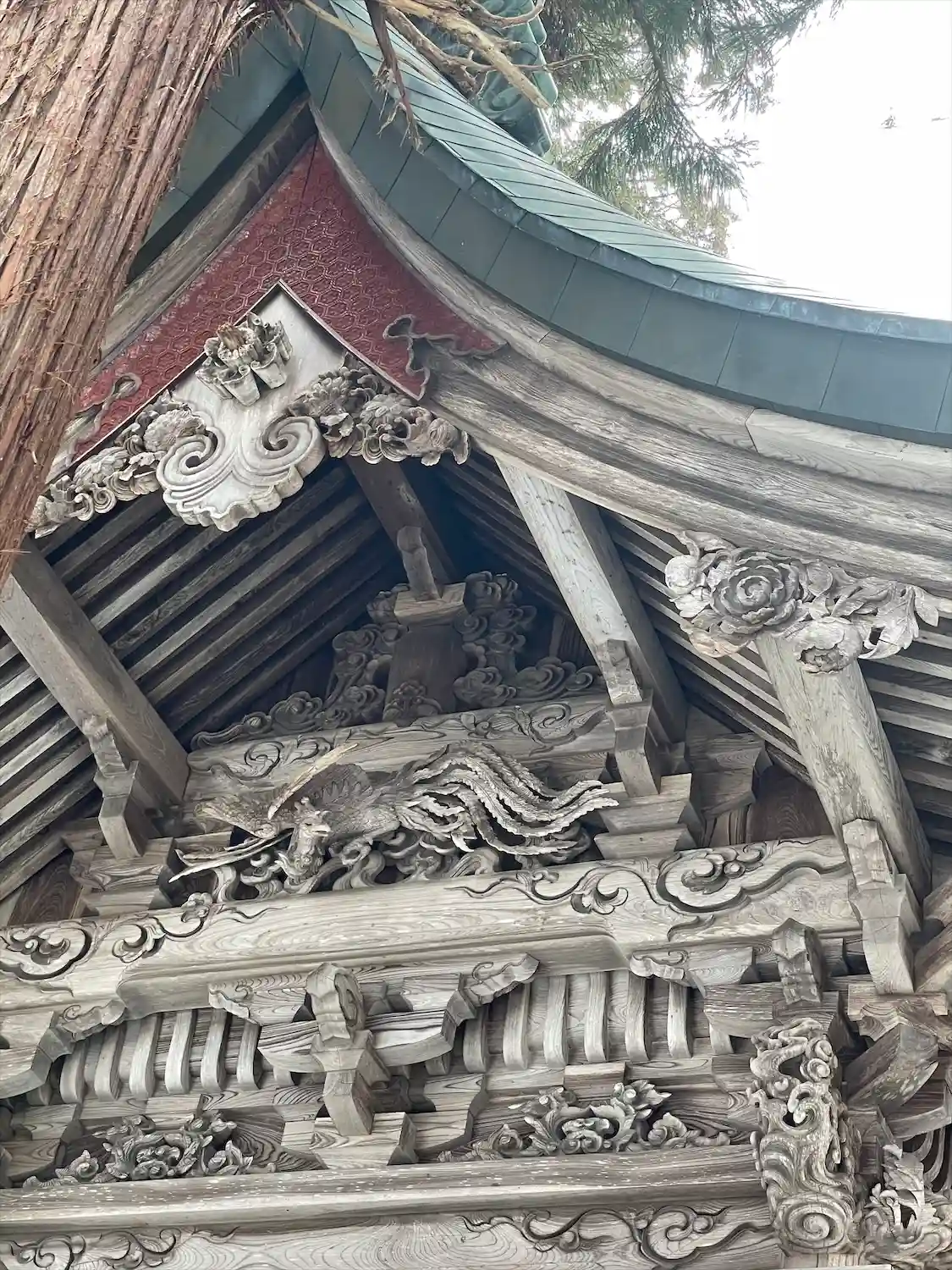 全国でも類似が少ない大規模拝殿。内部には仏間を備え、修験道場としての性格を備えた神仏習合時代の信仰形態をうかがわせる独自の形式。