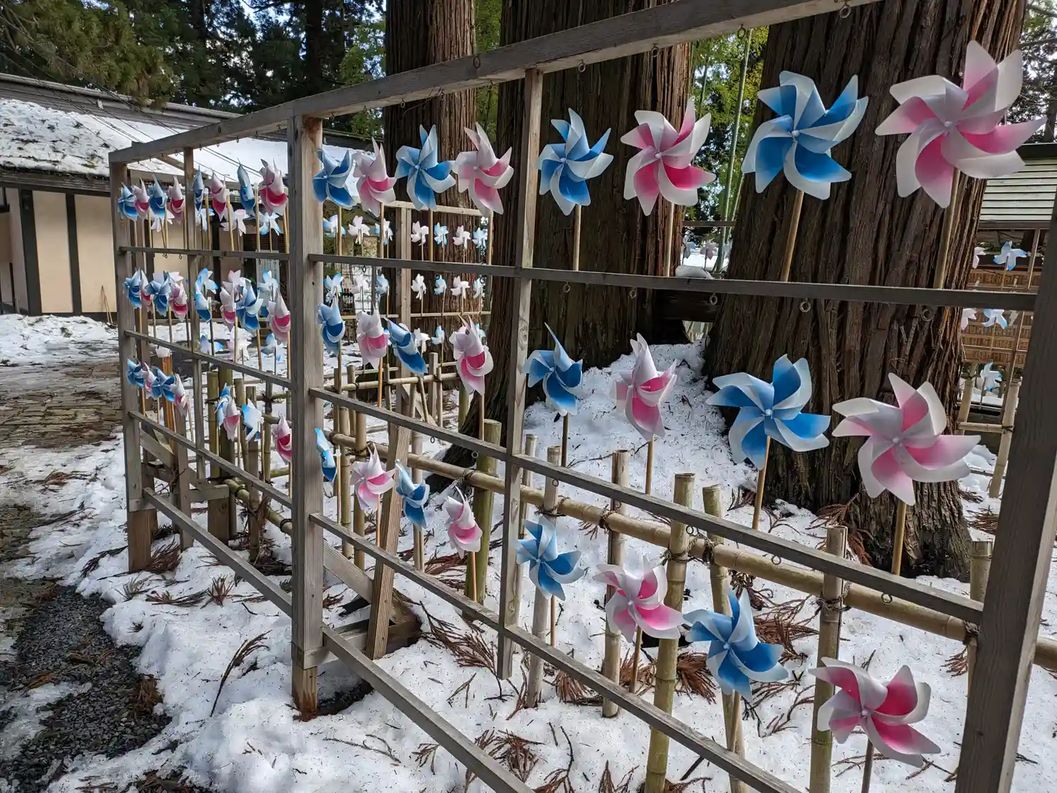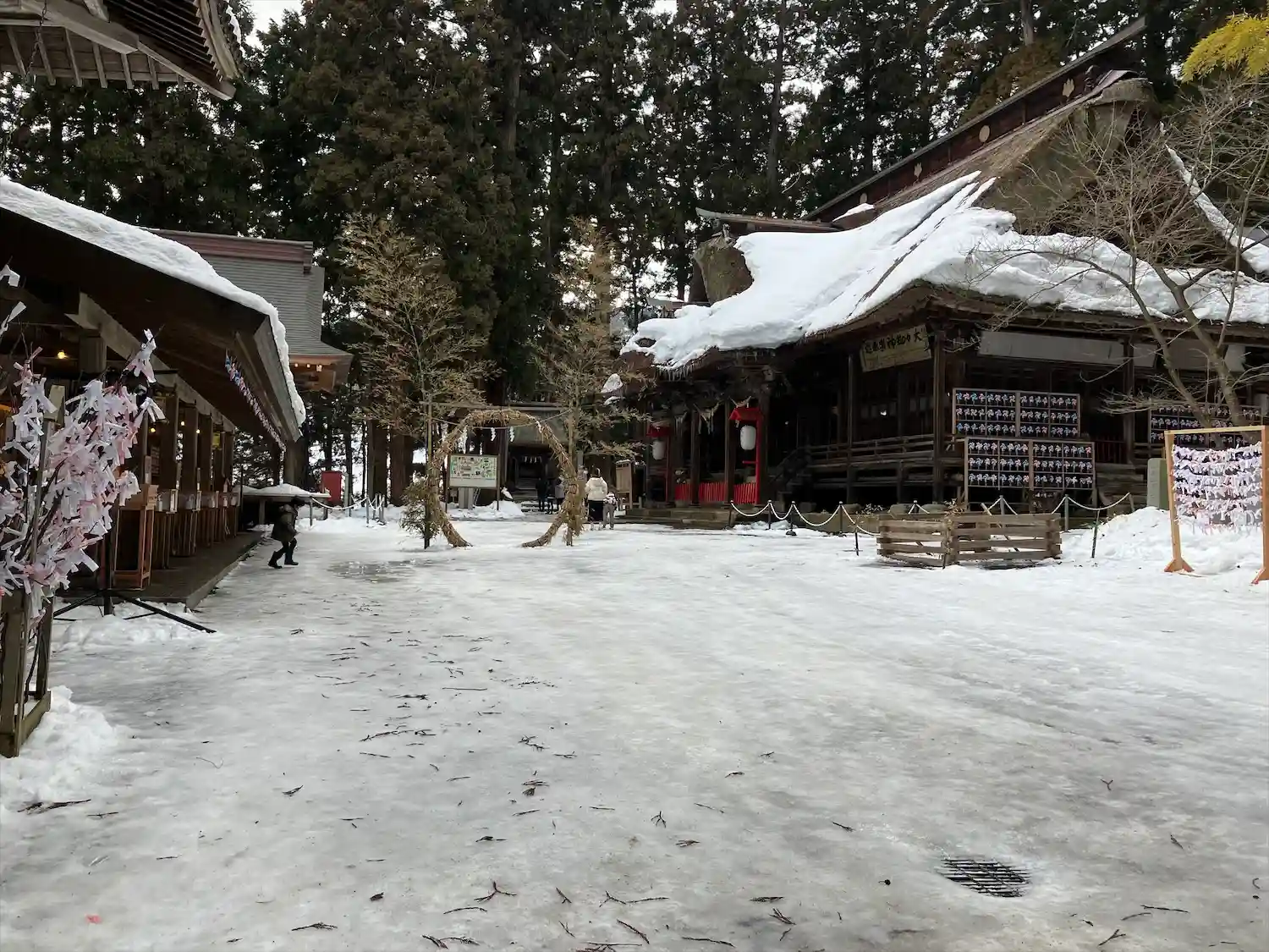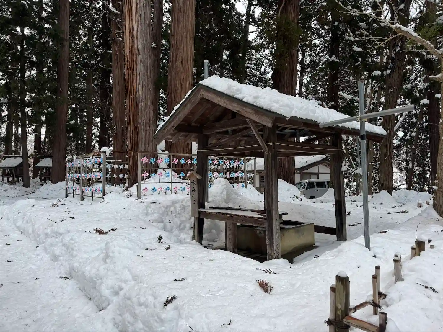 暖冬で全く降らなかったのに当日は凄い雪‼有名な三羽の兎を探すどころではなく残念。また春に訪ねたいと…