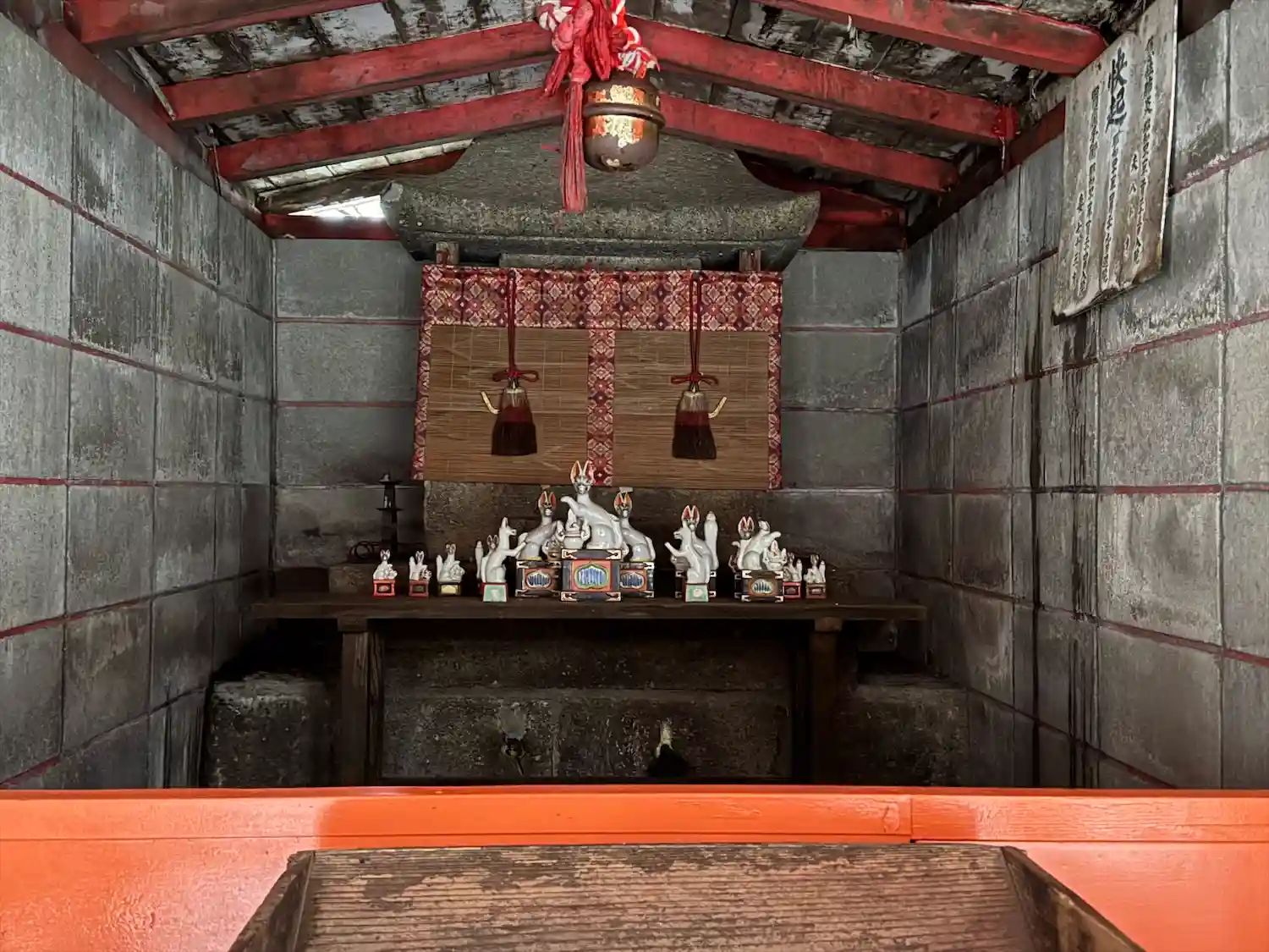 稲荷神社の参道左手の<千手堂>。内部には石仏が安置されている。立看板では「国常立神」を祀るとある。