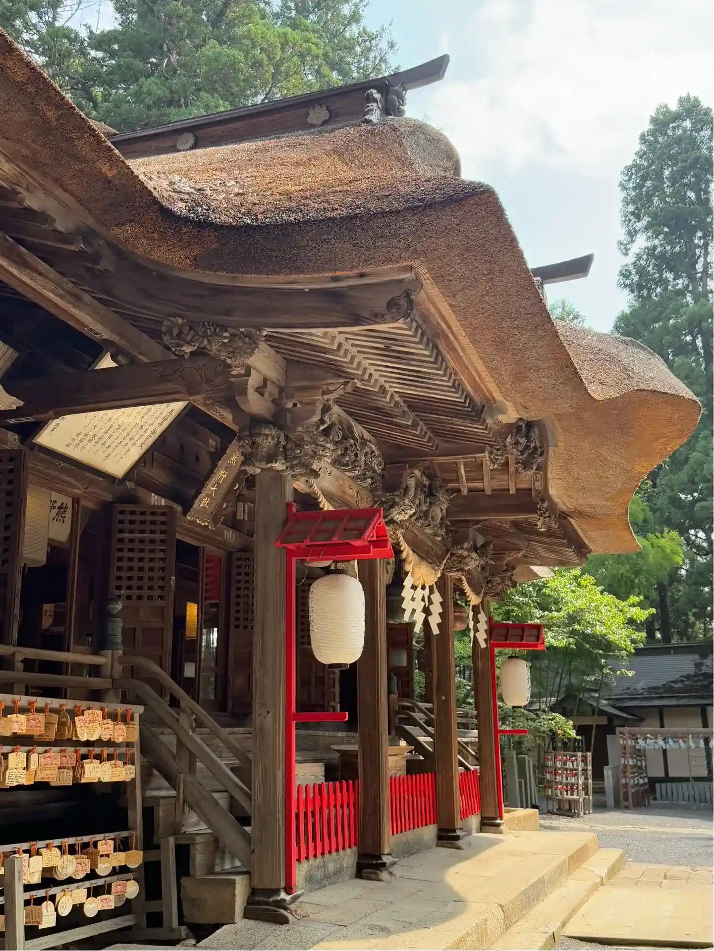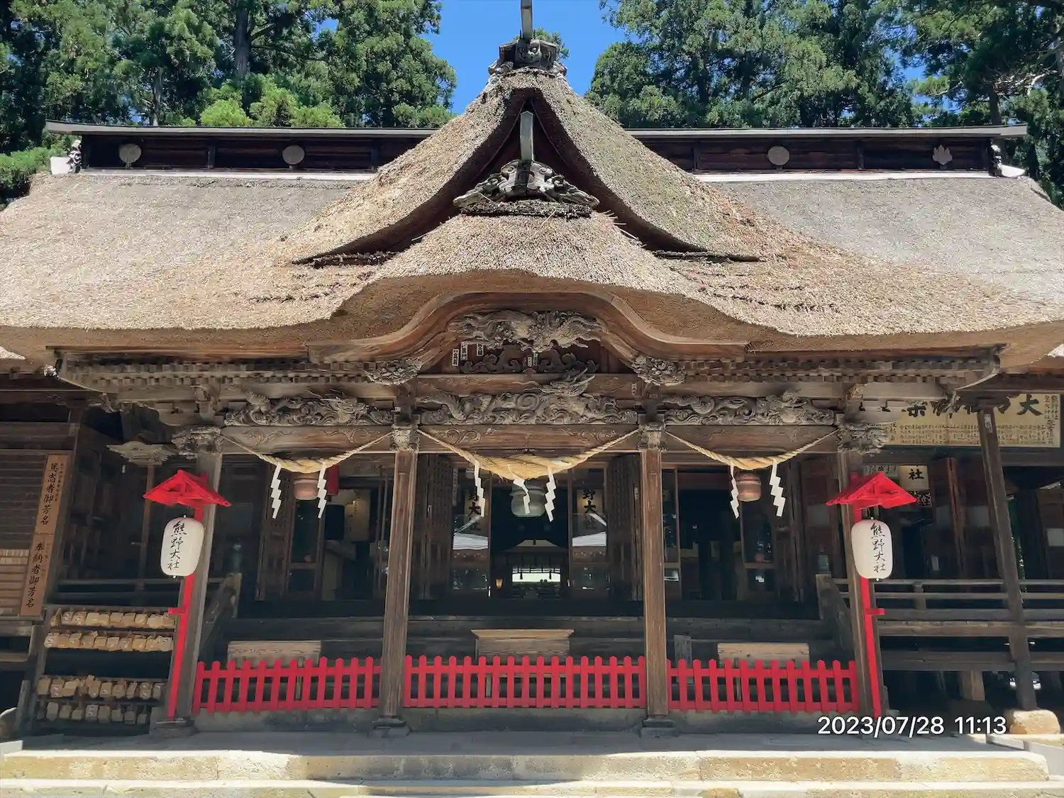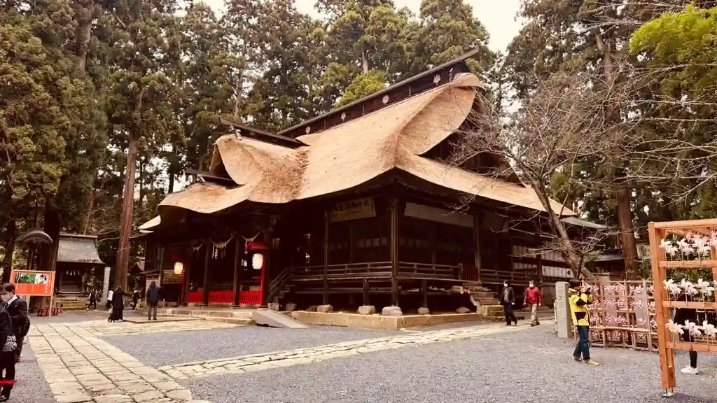 日本三熊野の一つで、茅葺き屋根の本殿⛩