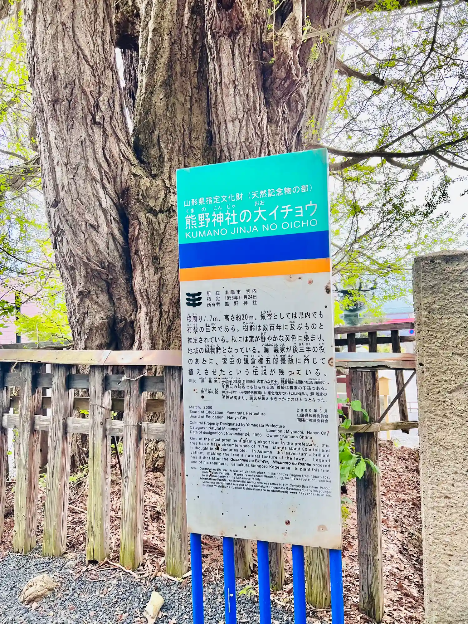 平安時代後期の前九年の役で源義家は当社で必勝祈願をし、後三年の役では家臣の鎌倉権五郎景政を使いとして必勝祈願をしたとされるが、この銀杏は景政の手植えしたものと伝わる。大銀杏の根本には<道祖神社>がある。