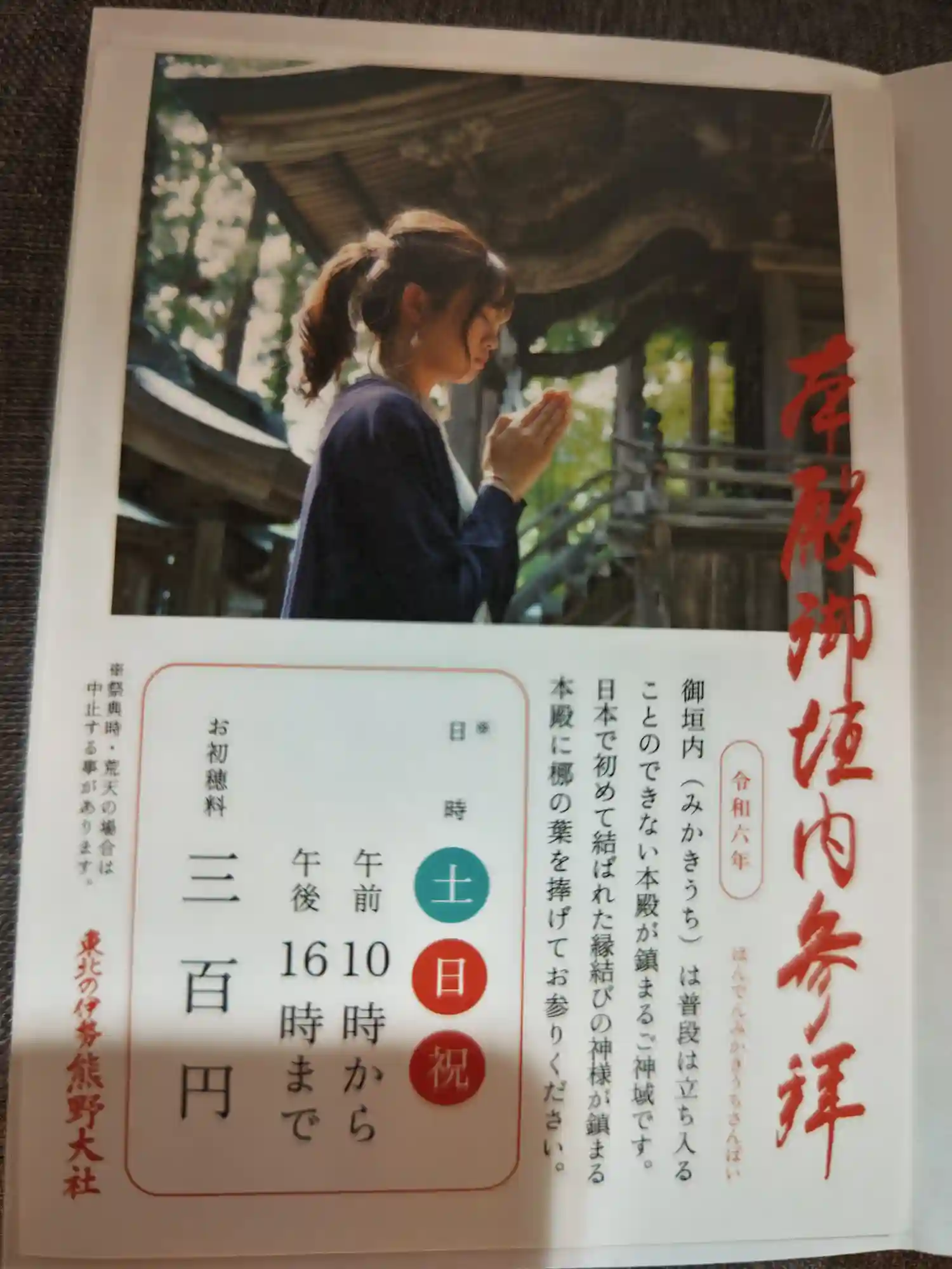 御朱印の案内(許可を得て撮影しています)