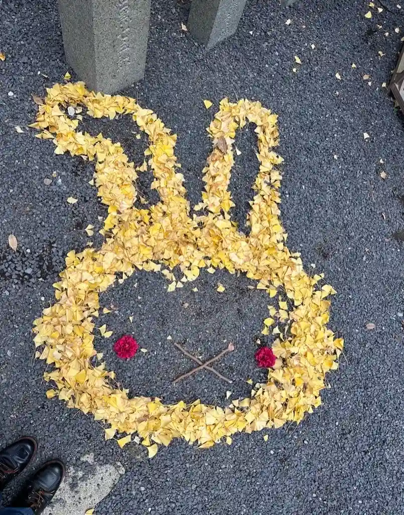境内には落ち葉を集めて作ったミッフィーちゃん