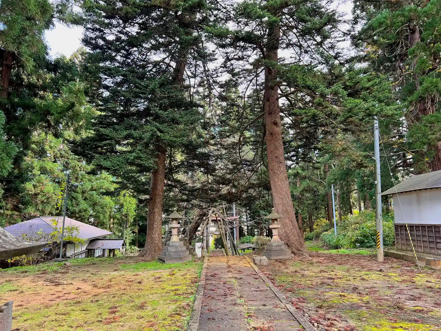 拝殿から振り返って境内全景。