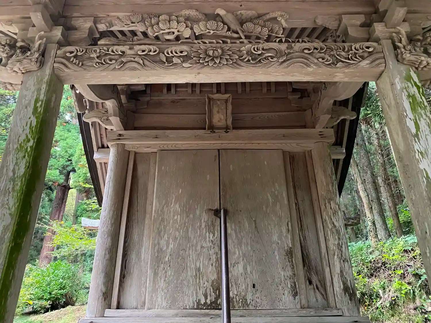 <拝殿>正面。軒下の彫刻も繊細で立派。