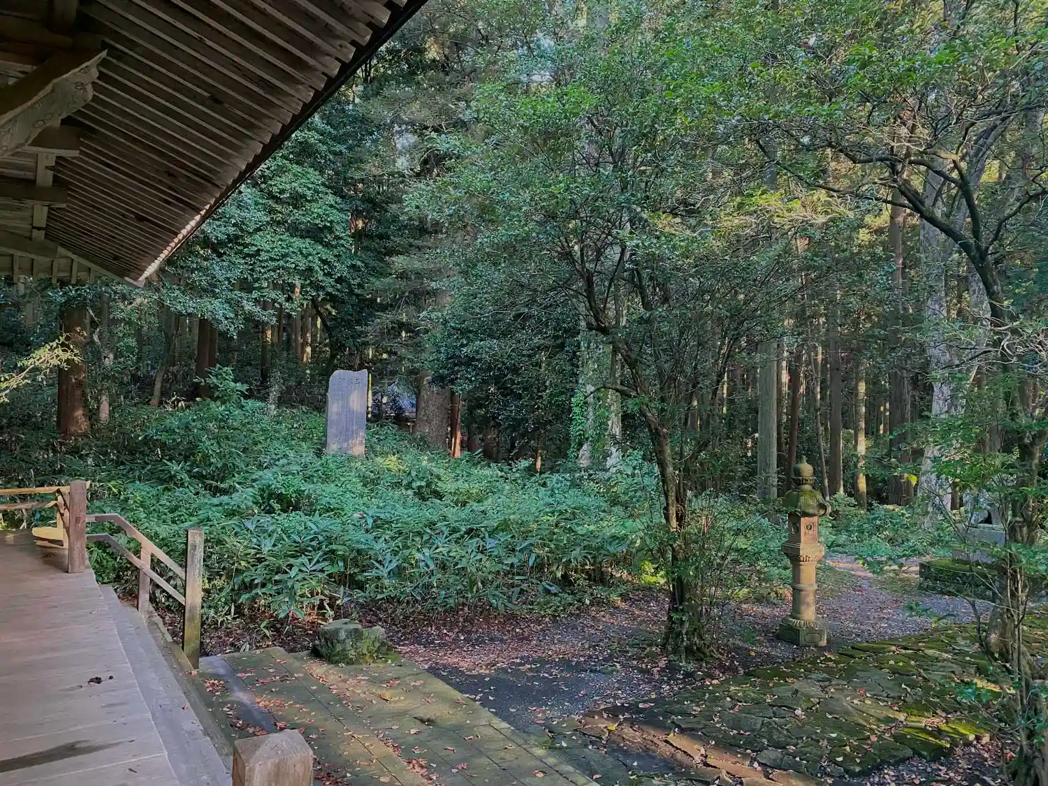 この木々が鬱蒼とした場所を考えると、屋根に枯葉が載っていないのはすごい。手入れの良さに驚き。