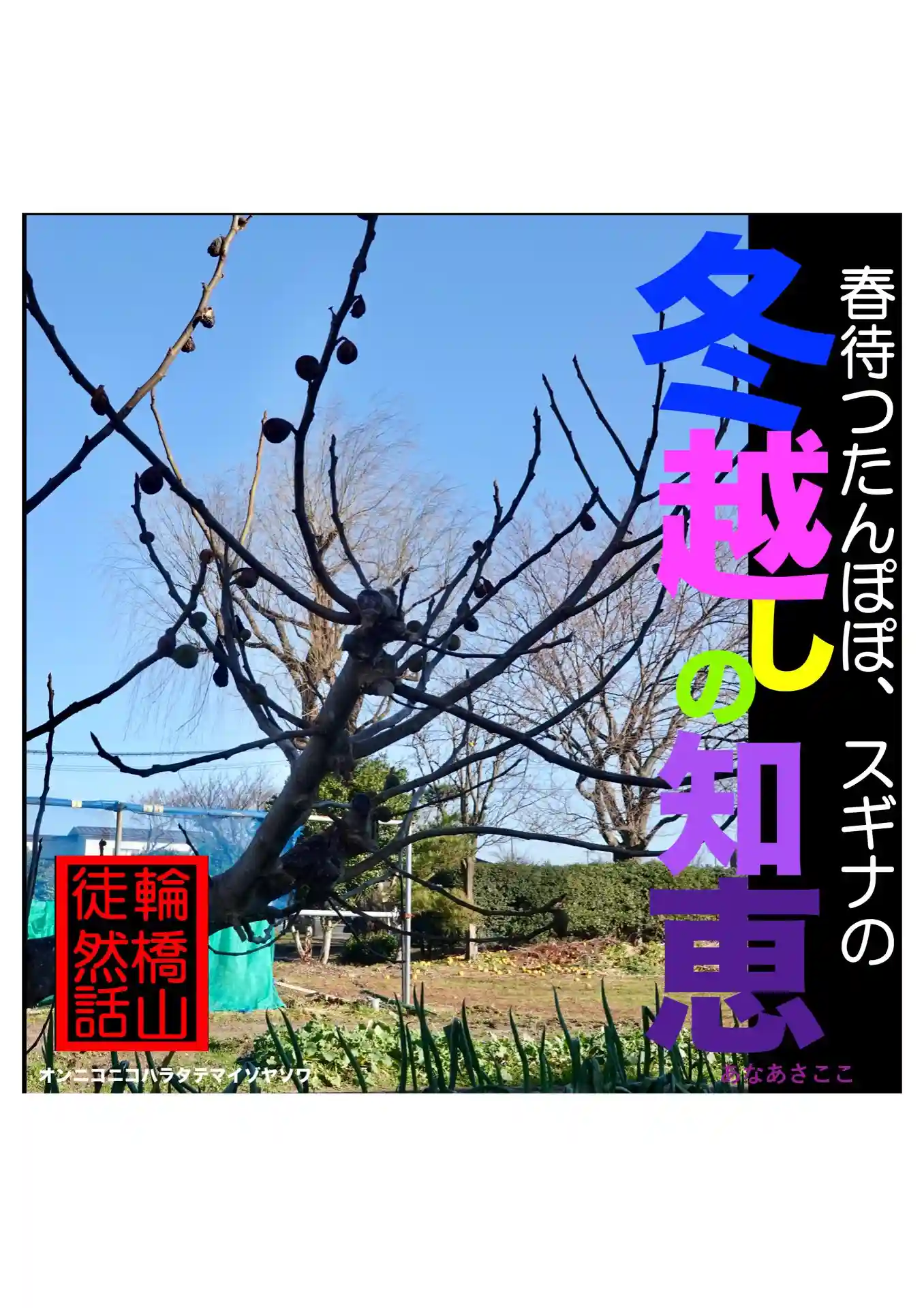 ◆雪は全てを覆い隠す。いや、覆い隠してくれる。しかし、雪のない今年はそうはいかない。だから、明日は手に余っているクズや蔦の根元を探ったり、ススキの株を小さくしたりしてみようかと思っている。