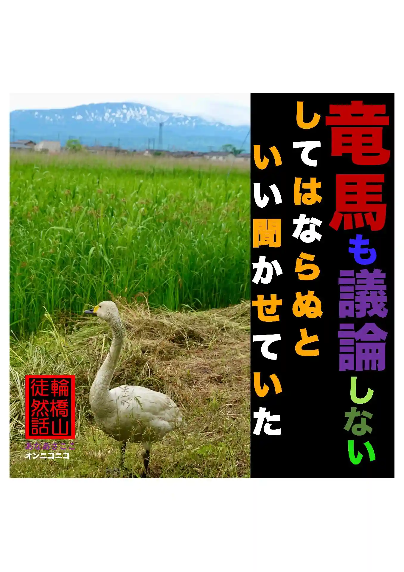 竜馬は、議論しない。議論などは、よほど重大なときでないかぎり、してはならぬ、と自分にいいきかせている。もし議論に勝ったとせよ。相手の名誉をうばうだけのことである。通常、人間は議論に負けても自分の所論や生き方は変えぬ生き物だし、負けた後、持つのは、負けた恨みだけである。(龍馬が行く)