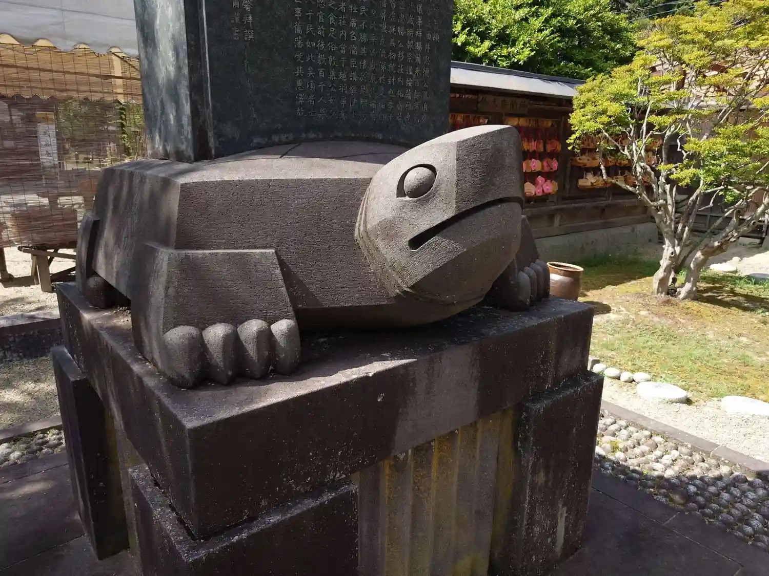 亀さんが石碑を背負ってました。