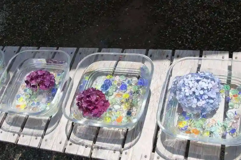 水に浮かべたビー玉。涼しげです。