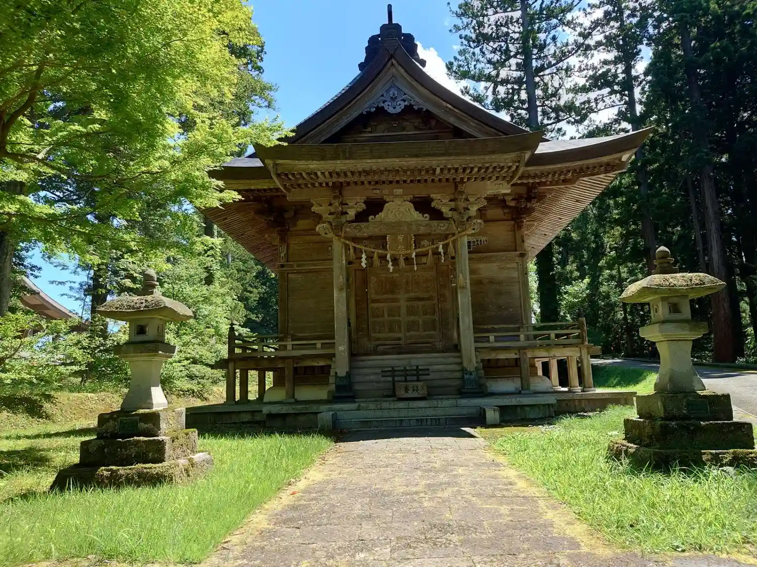 山形神社巡り③有料道路を利用し上の駐車場から参道を進み、最初の境内でした。ズルした後ろめたさはある…