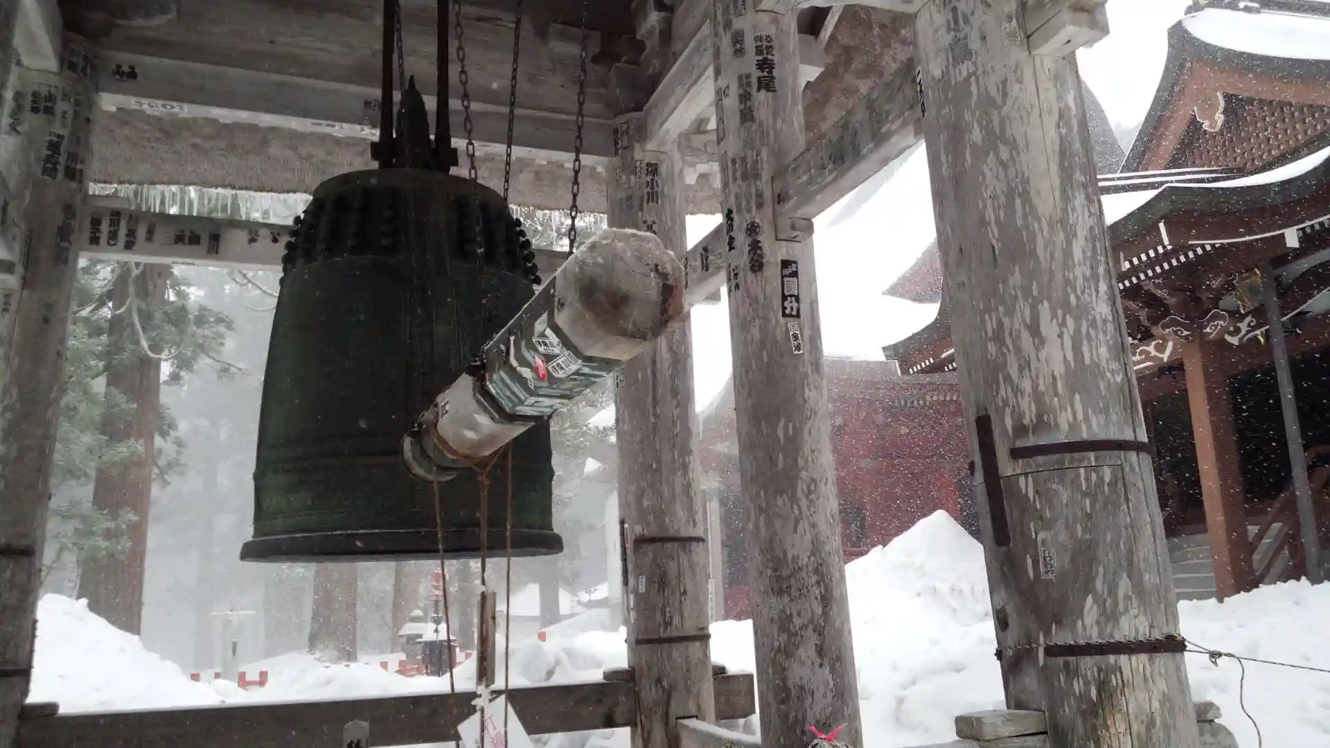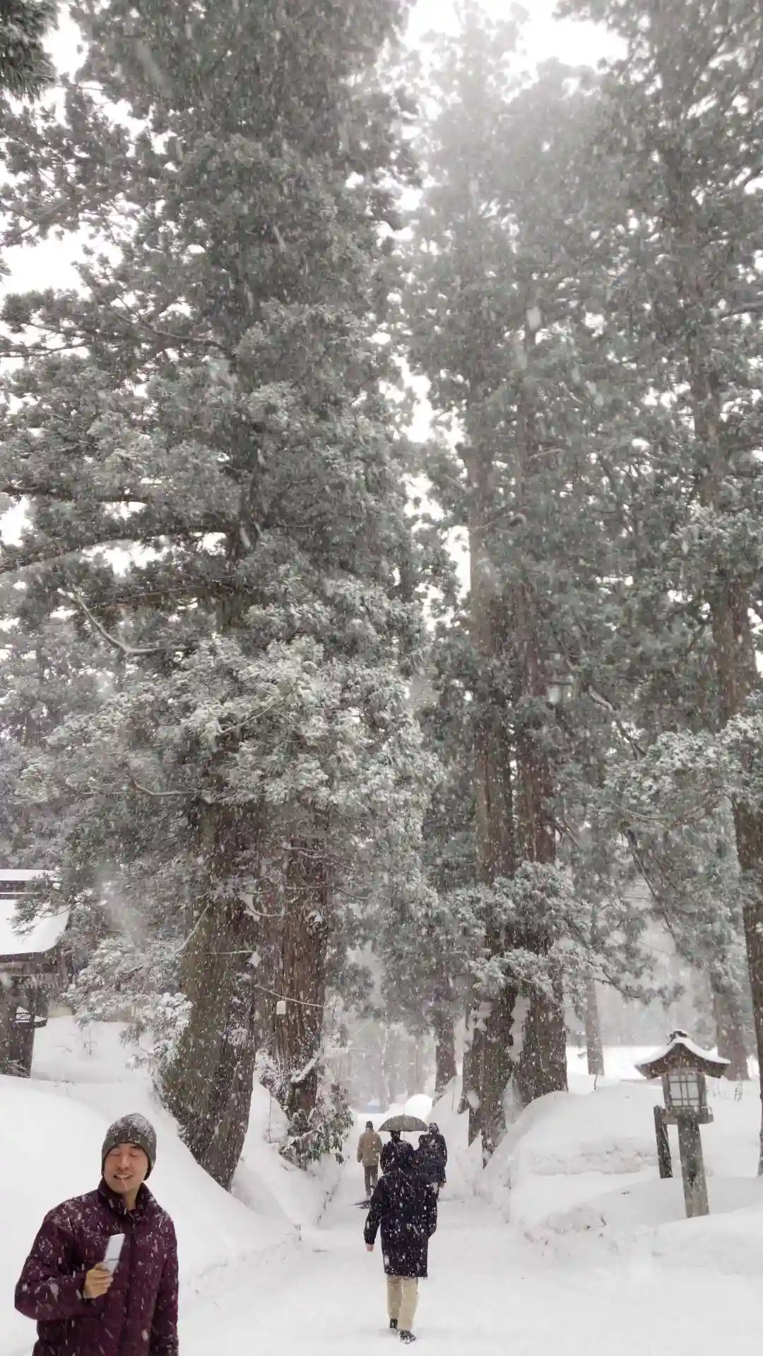 この日は、庄内の美味しいお酒とお魚をいただいた由良温泉で朝を迎えました。朝から雪が降り積もり、小高い山を上がった境内は新雪で真っ白です。直会をいただいた後、ご朱印を拝受いたしました。