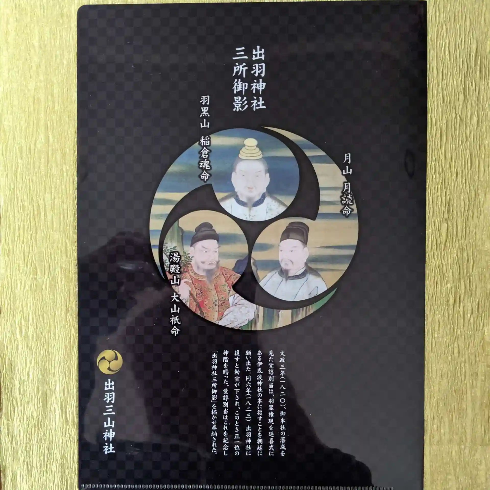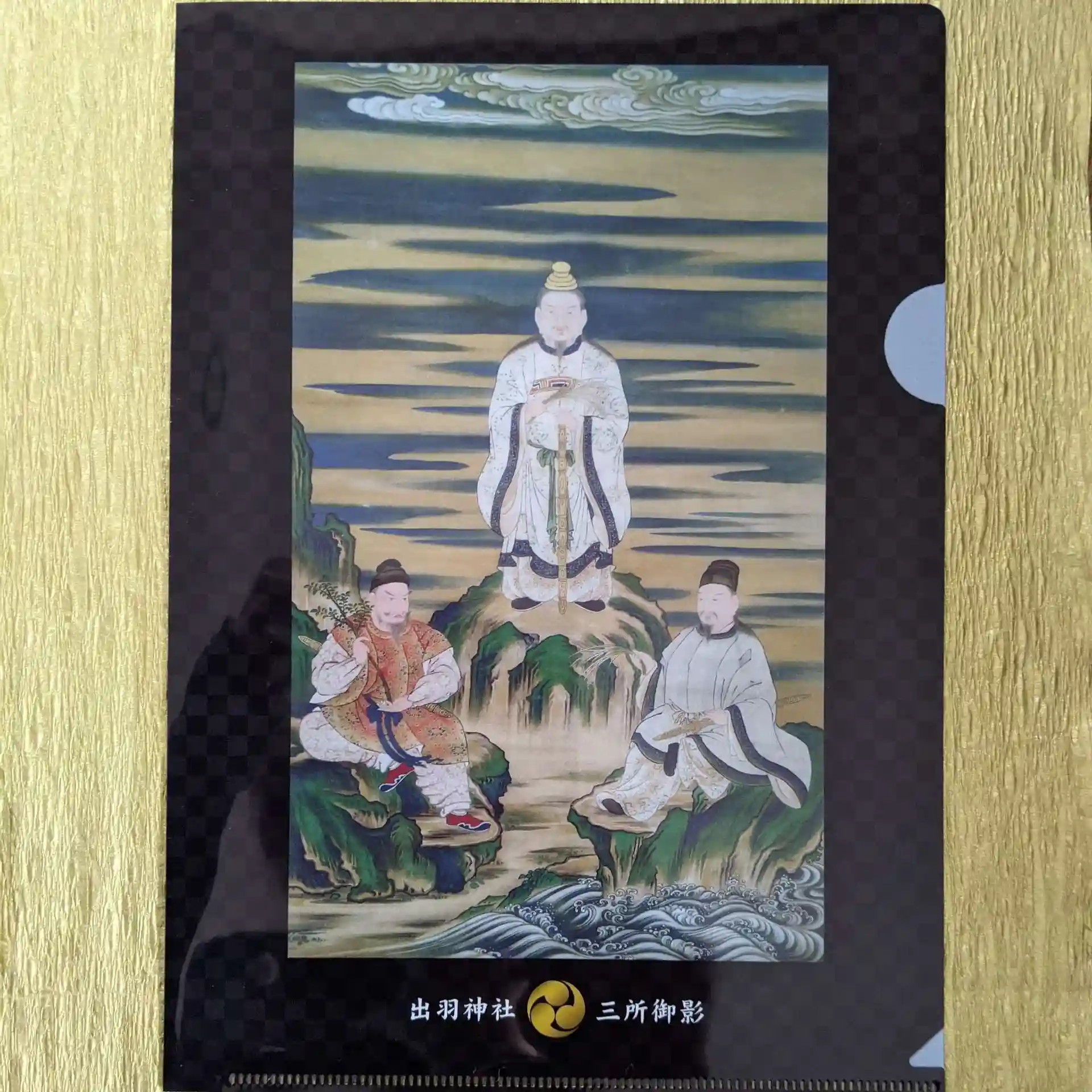 蜂子神社の御朱印と一緒に、出羽三山の御祭神が描かれたクリアファイルがセットされていました。