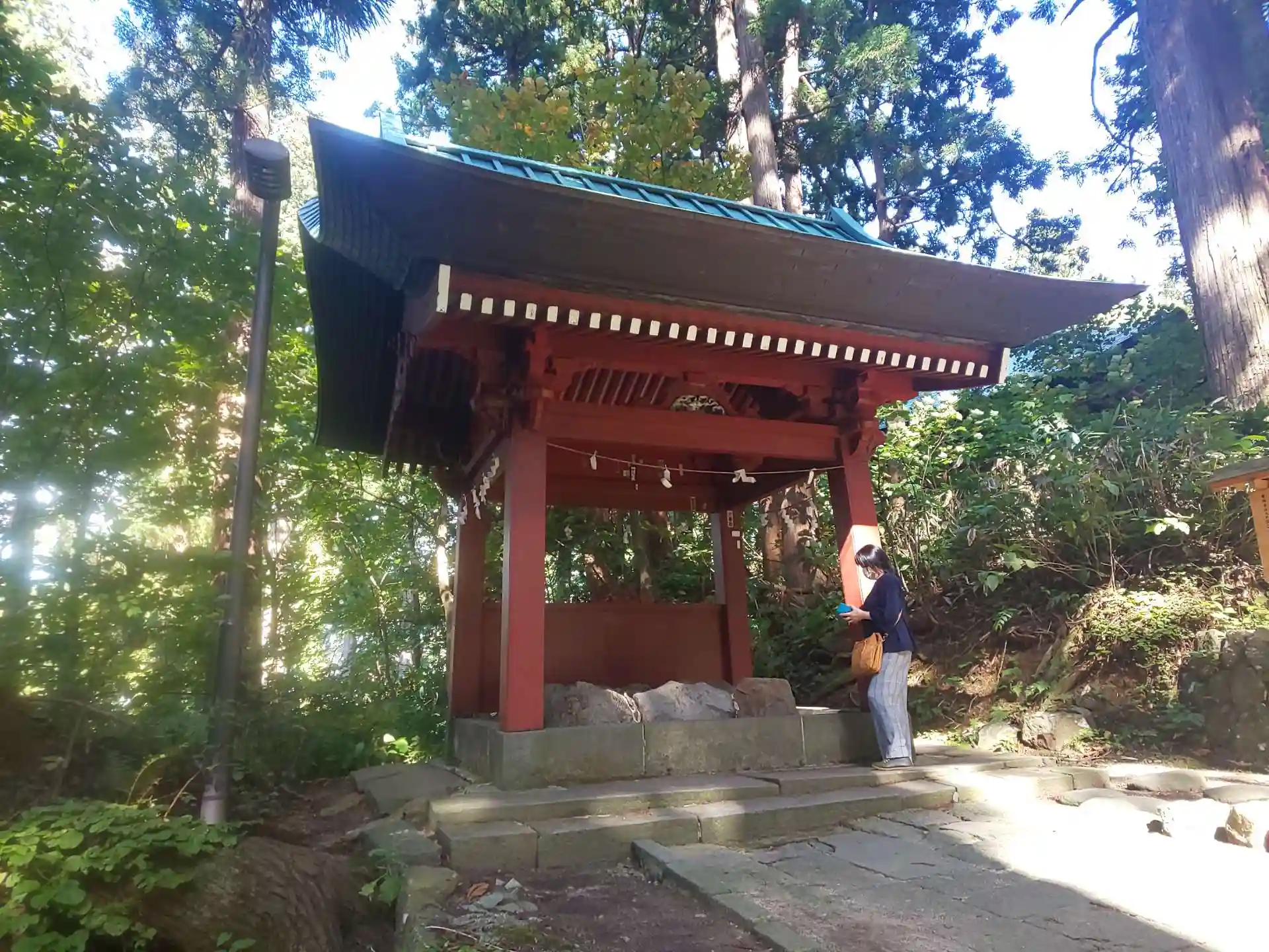 最初に山頂の神社を参拝してから車で下って五重塔まで行きました。