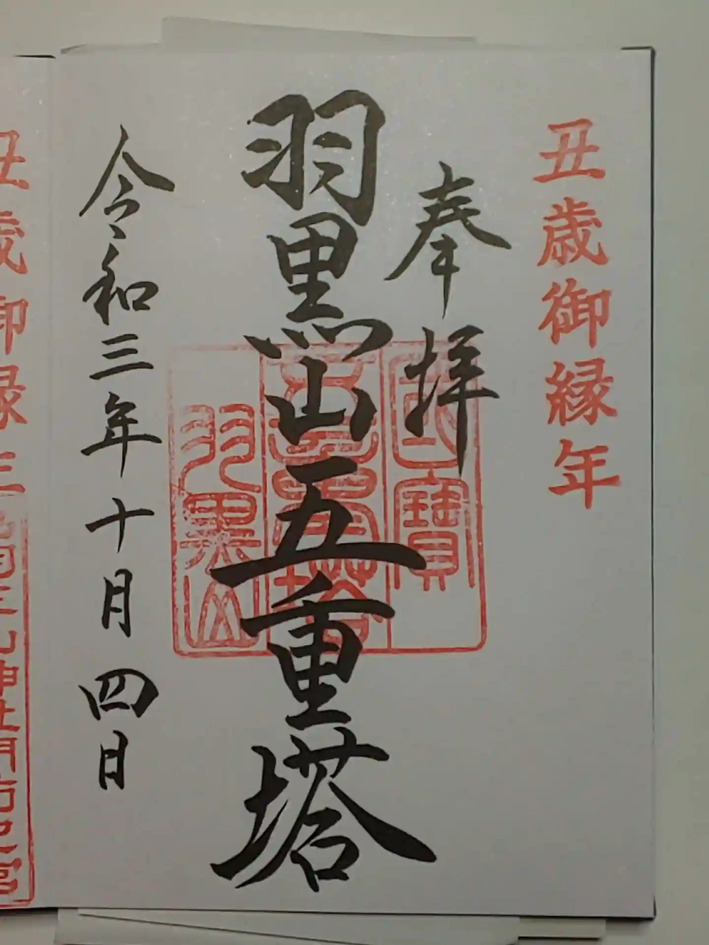 御朱印(直書き)羽黒山五重塔