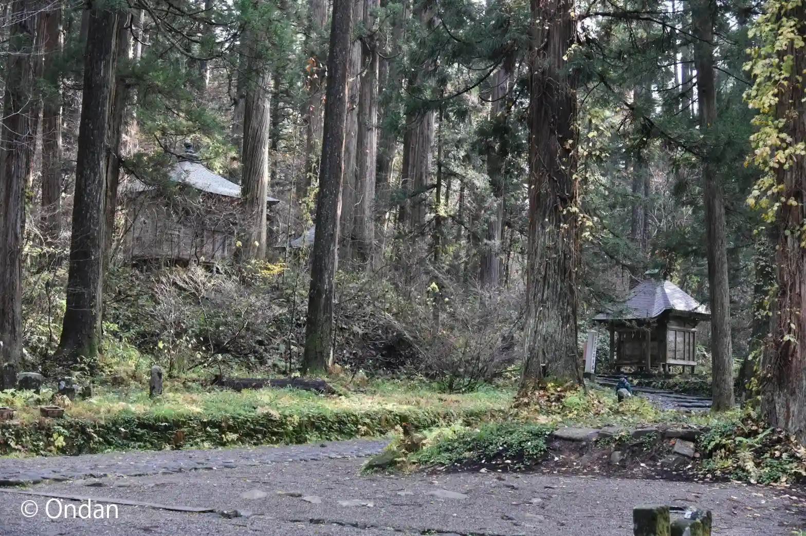 下ってくると五重塔が杉林のなかに聳えたちます。昔の人はこれを見て何を感じたのでしょうか。