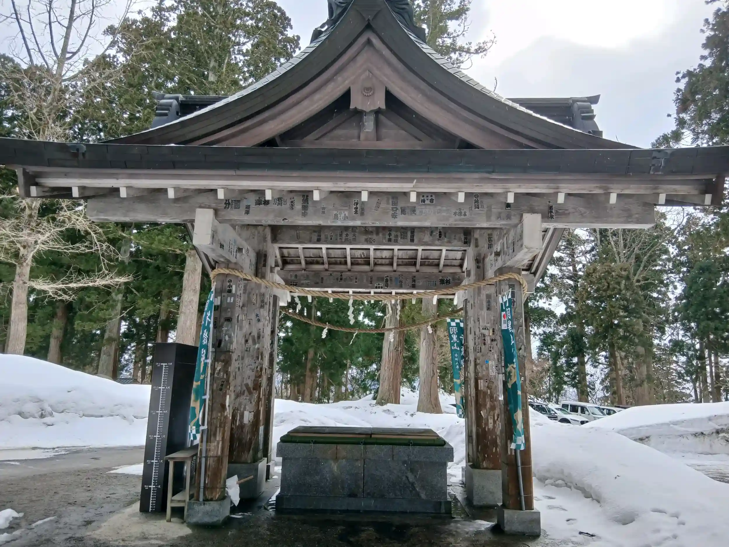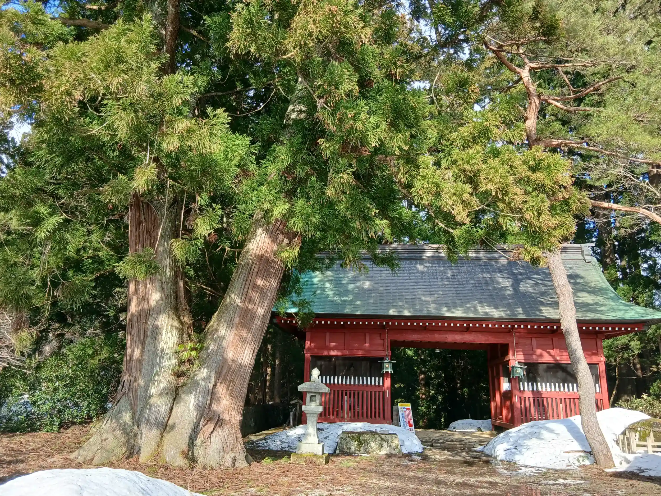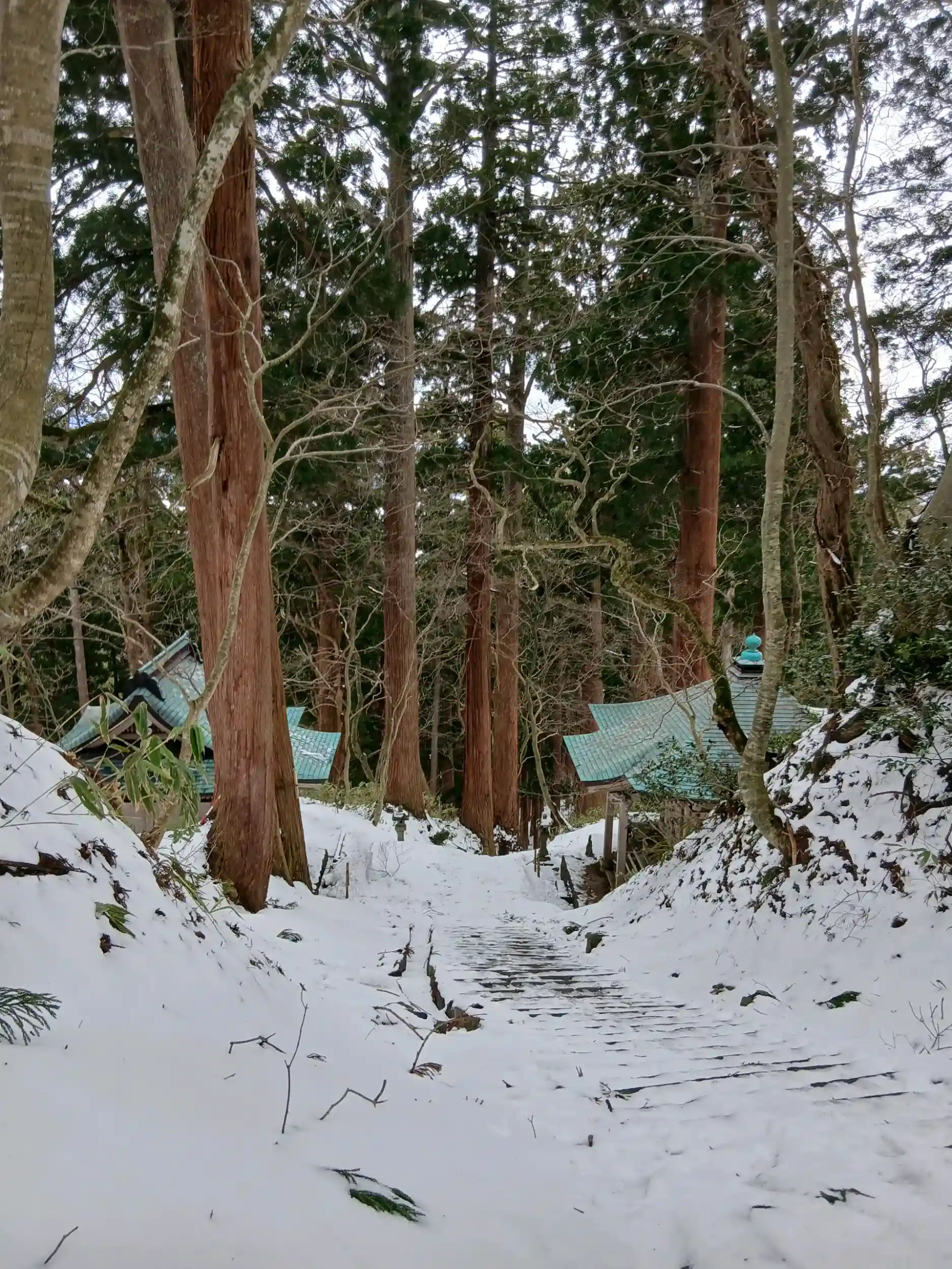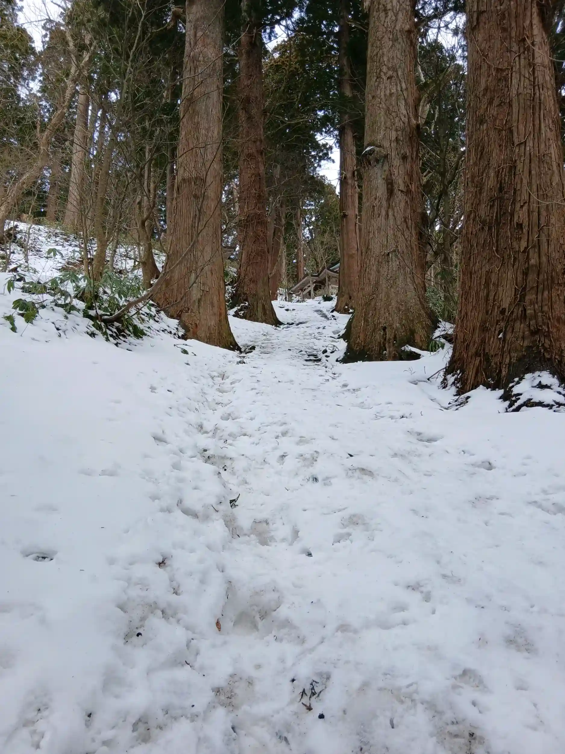 参道はまだまだ雪がありまして、ストックと長靴をお借りして、行こうか行くまいか迷いながら、決局登りました。
