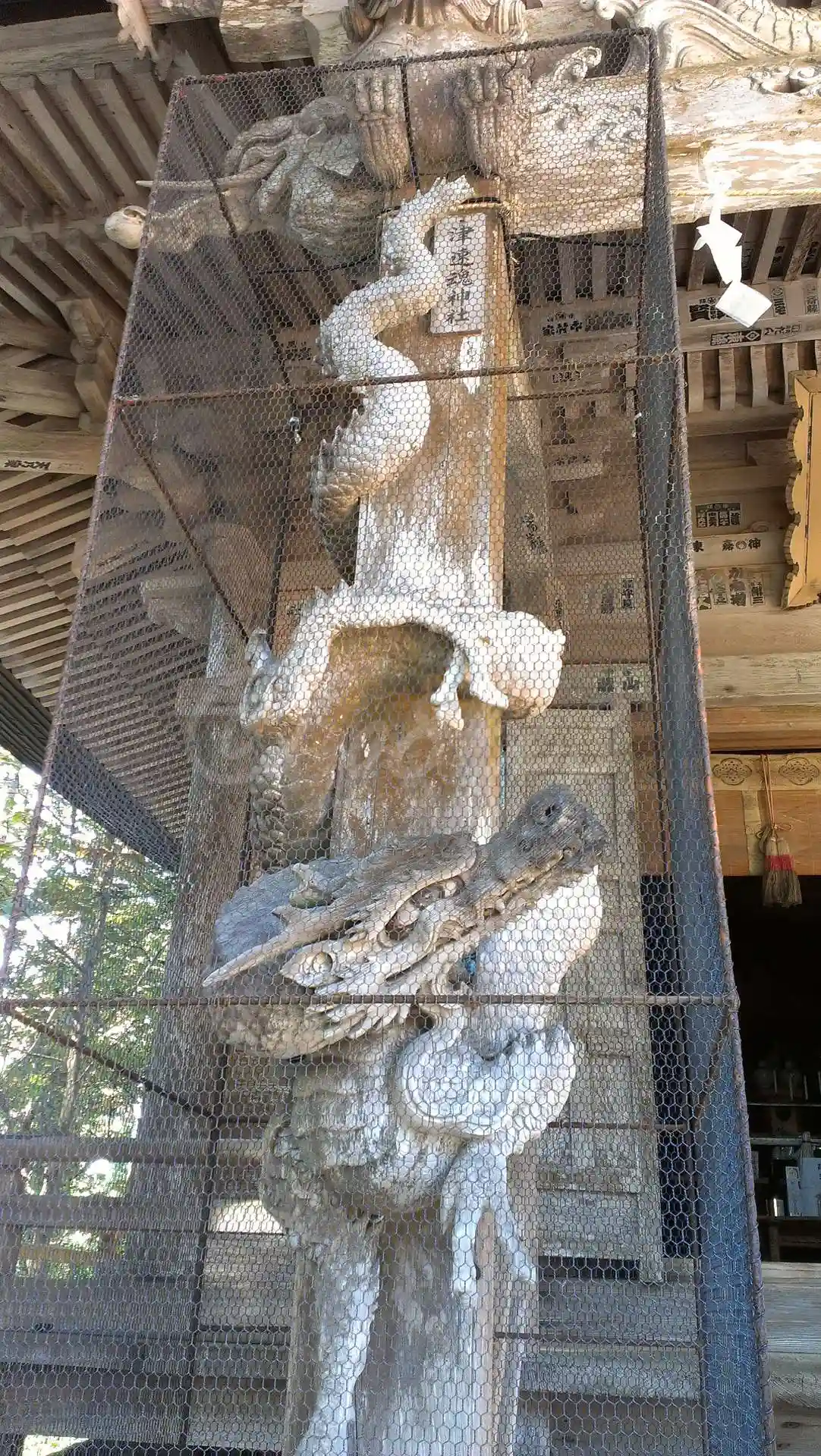 階段を数段上がると、当社のメインの建物<三神合祭殿>が現れる。(残念ながら向かって左側は修復中...)