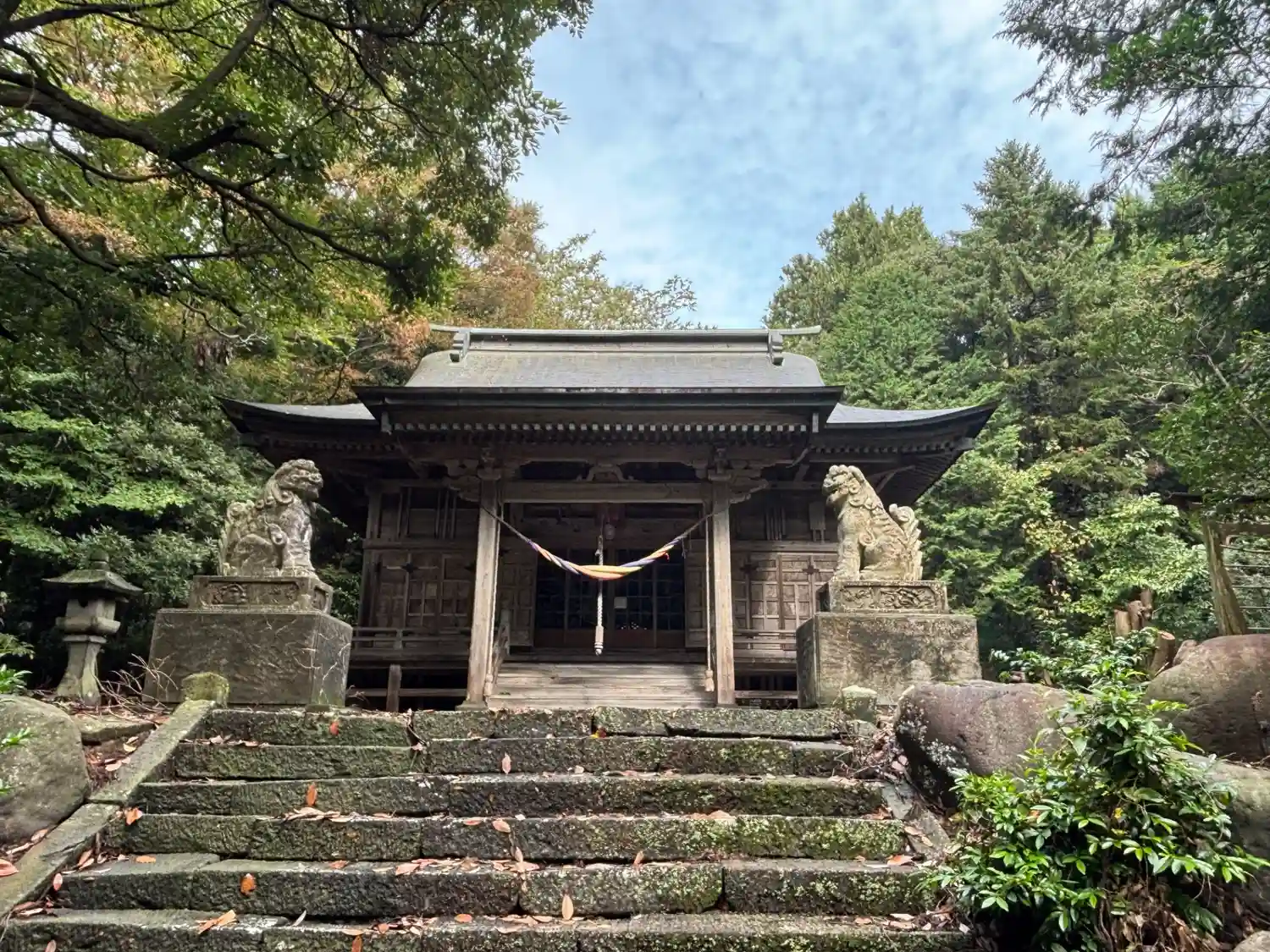 境内に車を停めて最後の石段を登ると社殿が見えてきます。