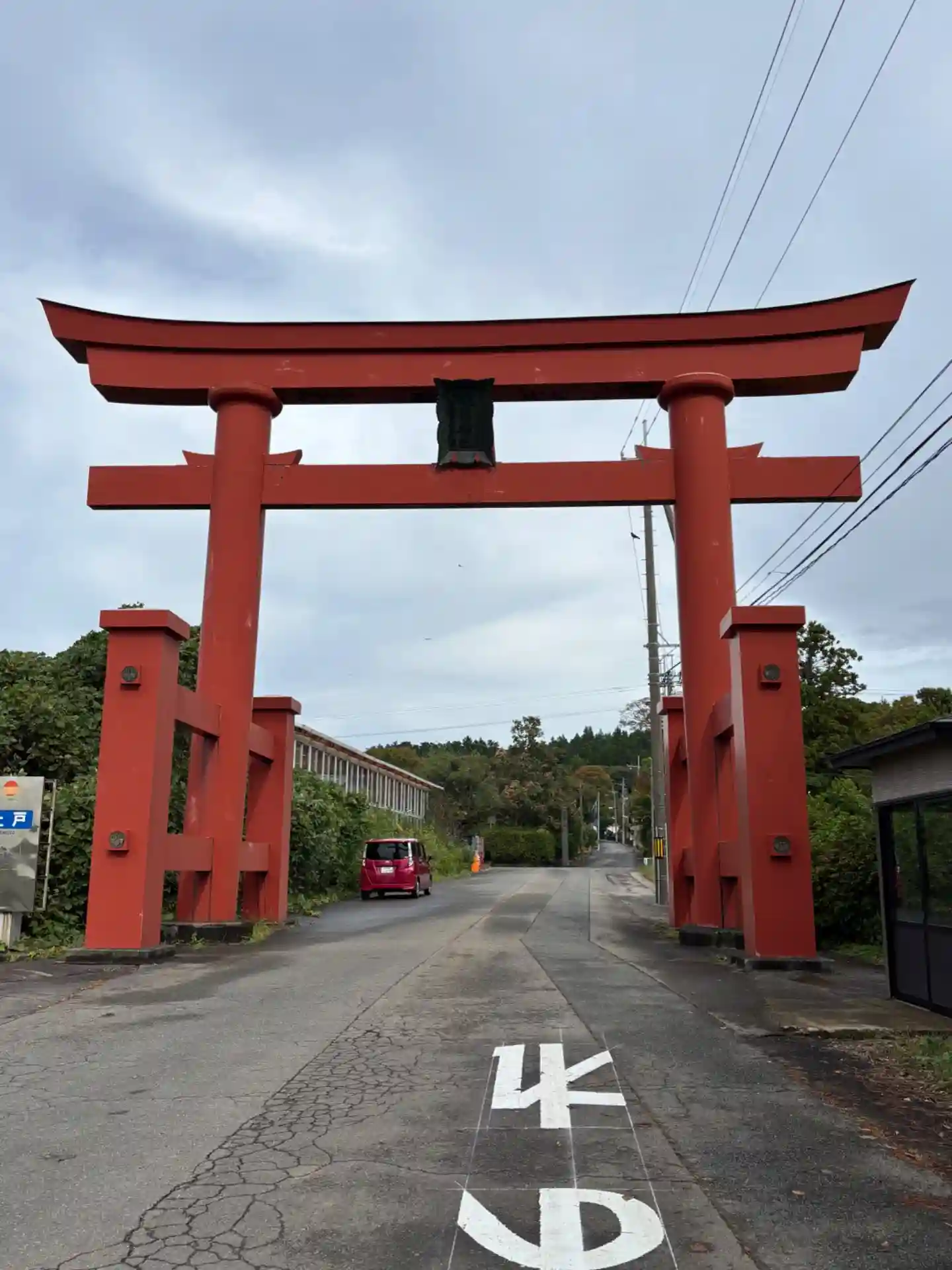 道路沿いの大きな鳥居