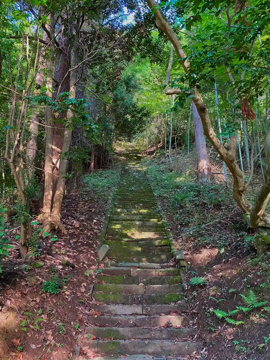 境内社群の右手にある、拝殿跡、蔵王権現碑につづく石段。100段ぐらいなら登ろうかと思ったが、案内板に400段とあったので、へたれな自分は即断念。。。