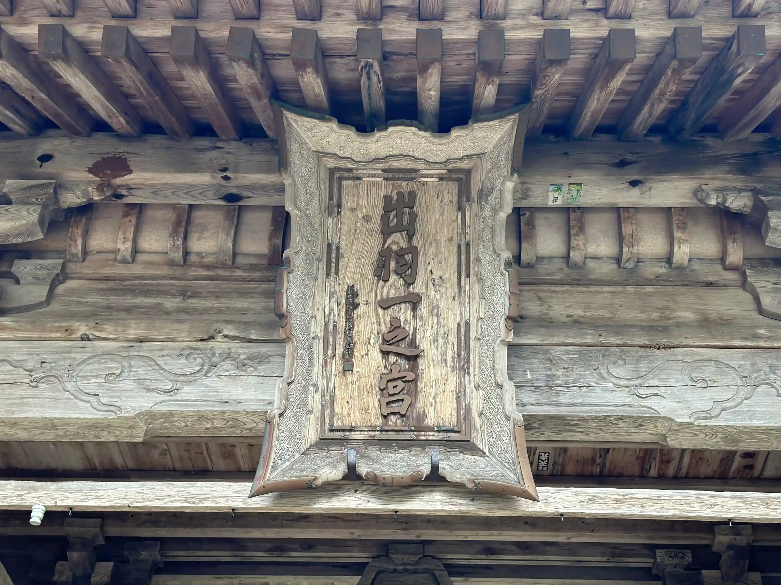随身門(かつての仁王門)は江戸時代後期に建築された三間一戸八脚門。本殿と同じく切妻造銅版葺、国登録有形文化財 出羽一之宮の扁額があります 神楽殿 入母屋造鉄板葺、江戸時代後期に鐘楼として建築され、神仏分離の際に神楽殿に改められました。見どころが沢山あり予定していた時間を過ぎてしまいました。