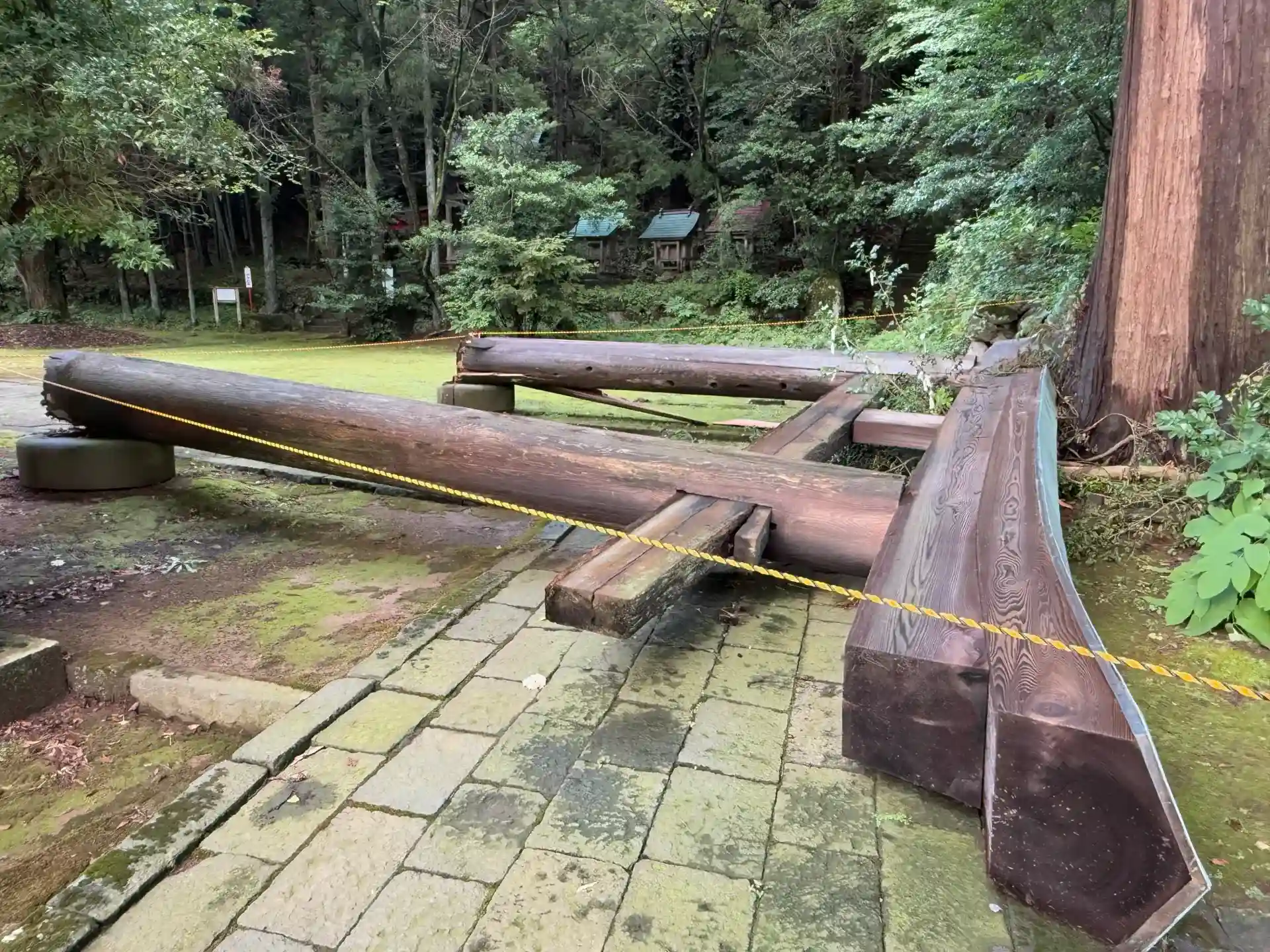 境内の鳥居が倒壊してロープが張られてました😱