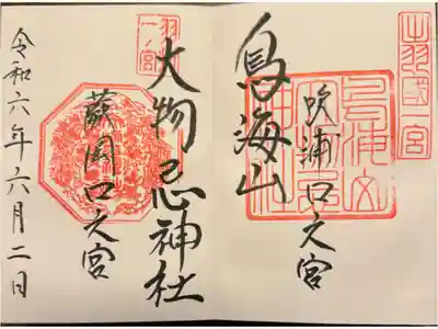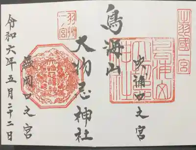 真ん中に鳥海山大物忌神社、その左に吹浦口ノ宮と書かれ、右上に出羽國一宮、真ん中に社印が押されています。