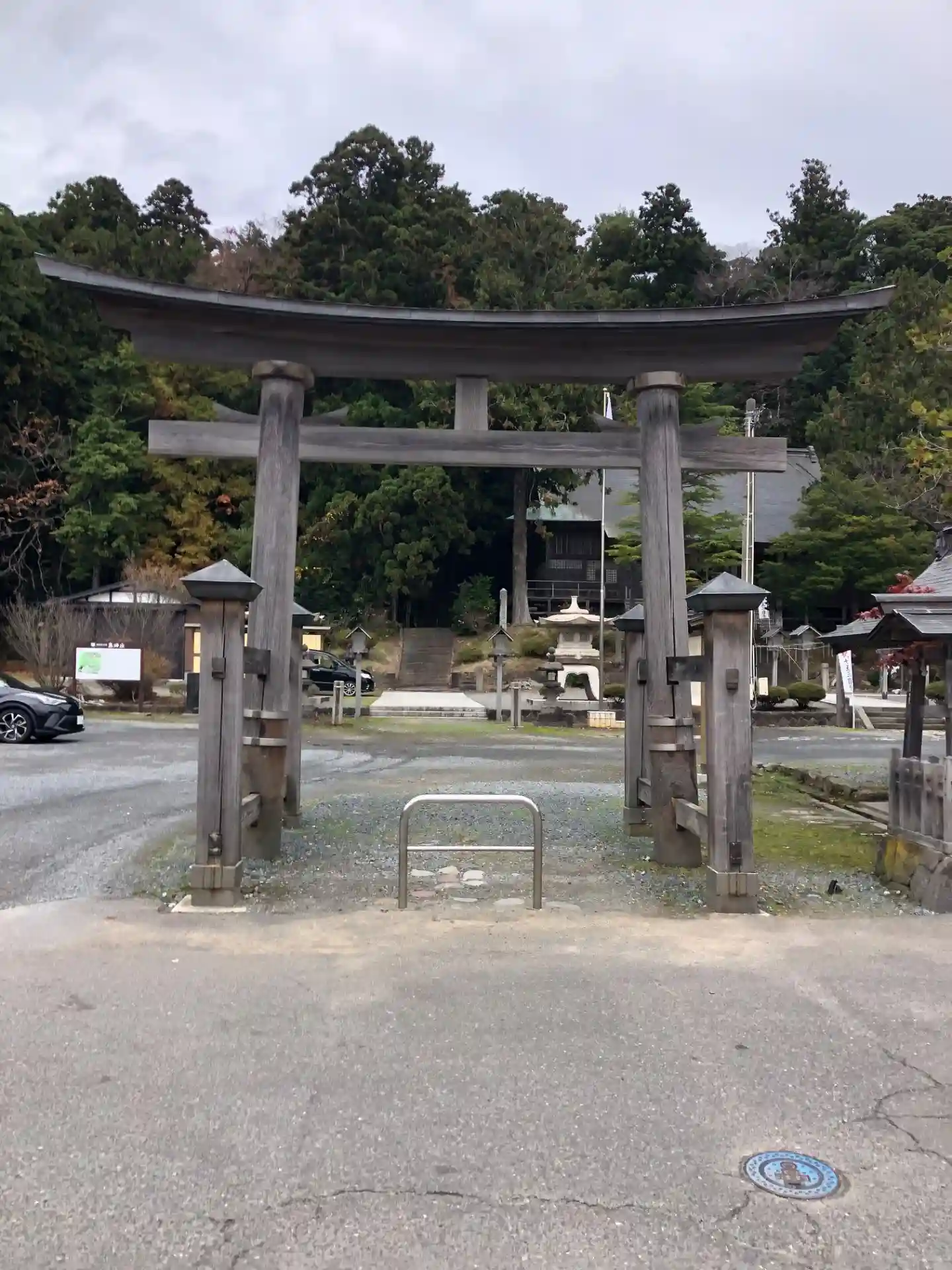 今日は雨が土砂降りなので、<下拝殿>すぐの駐車場に車を停めて、(一の鳥居と二の鳥居はパスして)ここからスタート。
