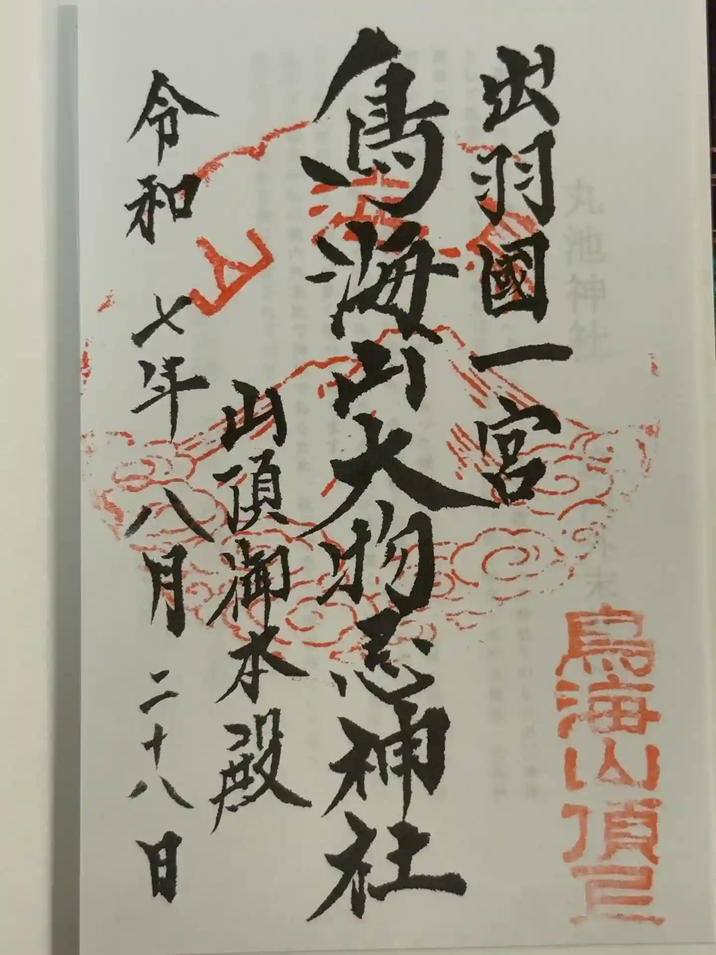 初めての出羽國の神社参拝なので、オリジナル御朱印帳を購入。当社では同デザインで5色のバリエーションがあり、どれも綺麗でけっこう迷った...(^_^;)